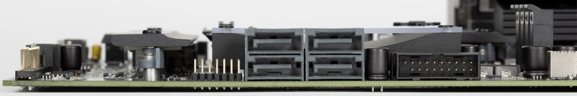 Всего у платы 4 разъема Serial ATA 6 Гбит/с + 3 слота для накопителей в форм-факторе M.2.