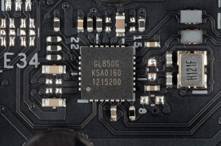 - 8 портов USB 2.0/1.1: 4 реализованы через хаб Genesys Logic GL850G (на него потрачена линия USB 2.0 от B660) и представлены на задней панели 4 портами Type-A (черного цвета); еще 4 реализованы через B660 представлены двумя внутренними разъемами на материнской плате (каждый на 2 порта).