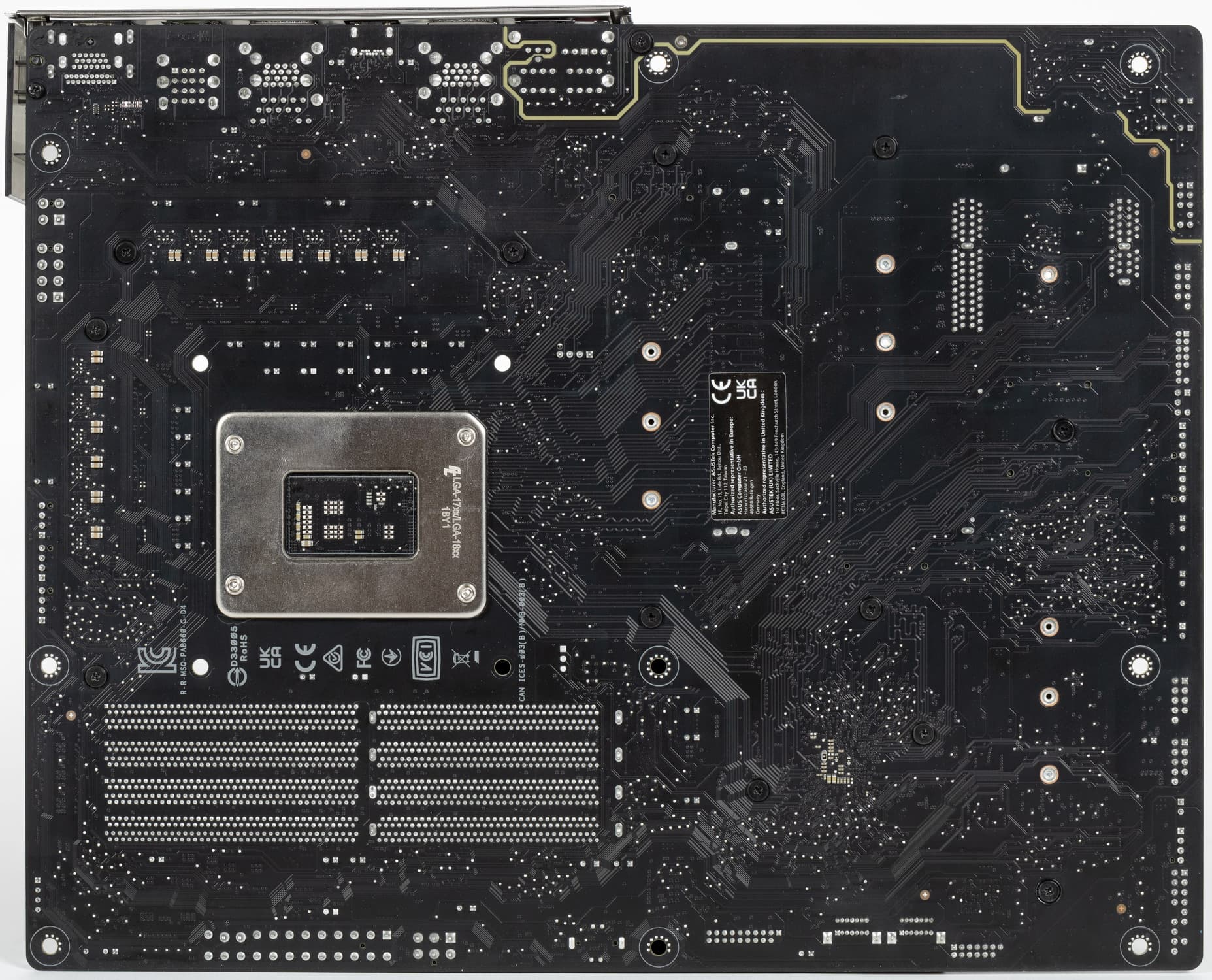 У платы 16 USB-портов, включая 1 быстрый USB 3.2 Gen2 и один самый быстрый USB 3.2 Gen2×2 (он пригоден для быстрой зарядки мобильных устройств благодаря повышенному питанию), плюс 6 портов USB 3.2 Gen1. У этой модели два «длинных» слота: один PCIe х16, получающий от процессора 16 линий PCIe, причем версии 5.0, и один PCIe x4. Также плата оснащена маленьким PCIe x1 и 3 слотами M.2: один из них подключен напрямую к процессору линиями PCIe 4.0, два других подключены к чипсету B660 линиями PCIe 3.0/4.0. Еще у этой модели 4 порта SATA и 7 разъемов для вентиляторов. Сетевые возможности включают два проводных контроллера: обычный на 1 Гбит/с и более скоростной на 2,5 Гбит/с. Беспроводной Wi-Fi-контроллер можно приобрести дополнительно и установить в слот на плате. В числе плюсов можно упомянуть возможность подключения дополнительных ARGB/RGB-устройств подсветки, при этом на самой плате подсветки нет, так что раздражать она никого не будет.