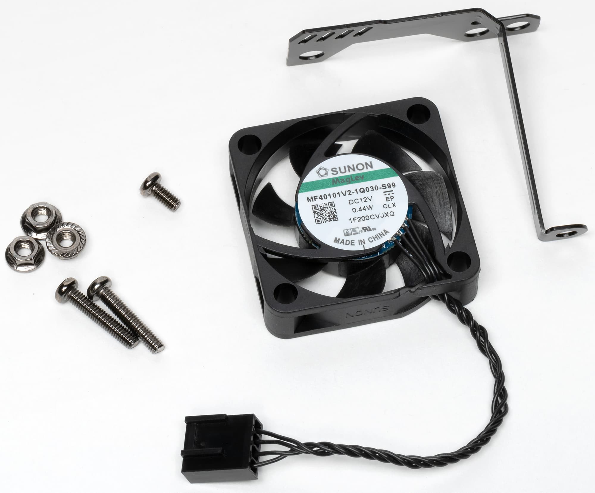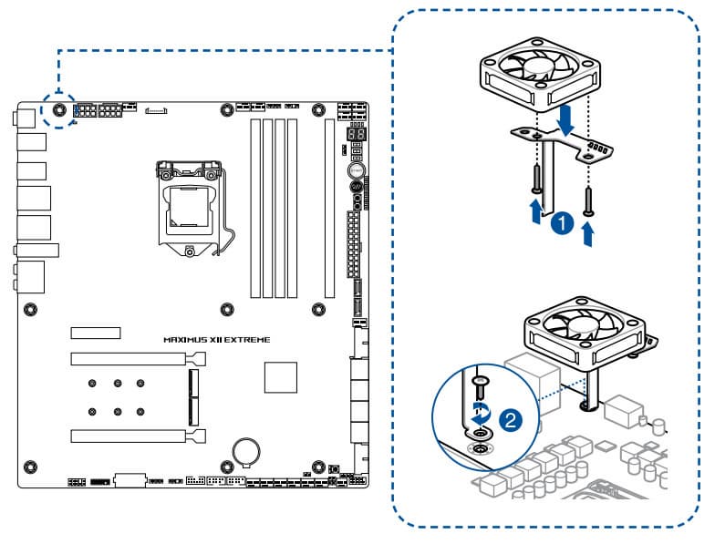 Если любителям разгона чрезмерный нагрев VRM (при условии пассивного охлаждения) станет помехой, то в комплекте поставки материнской платы есть маленький вентилятор с крепежом для монтажа над основным радиатором VRM.