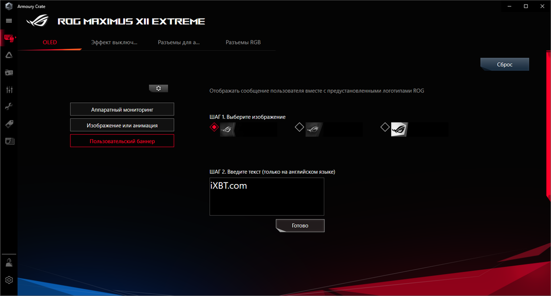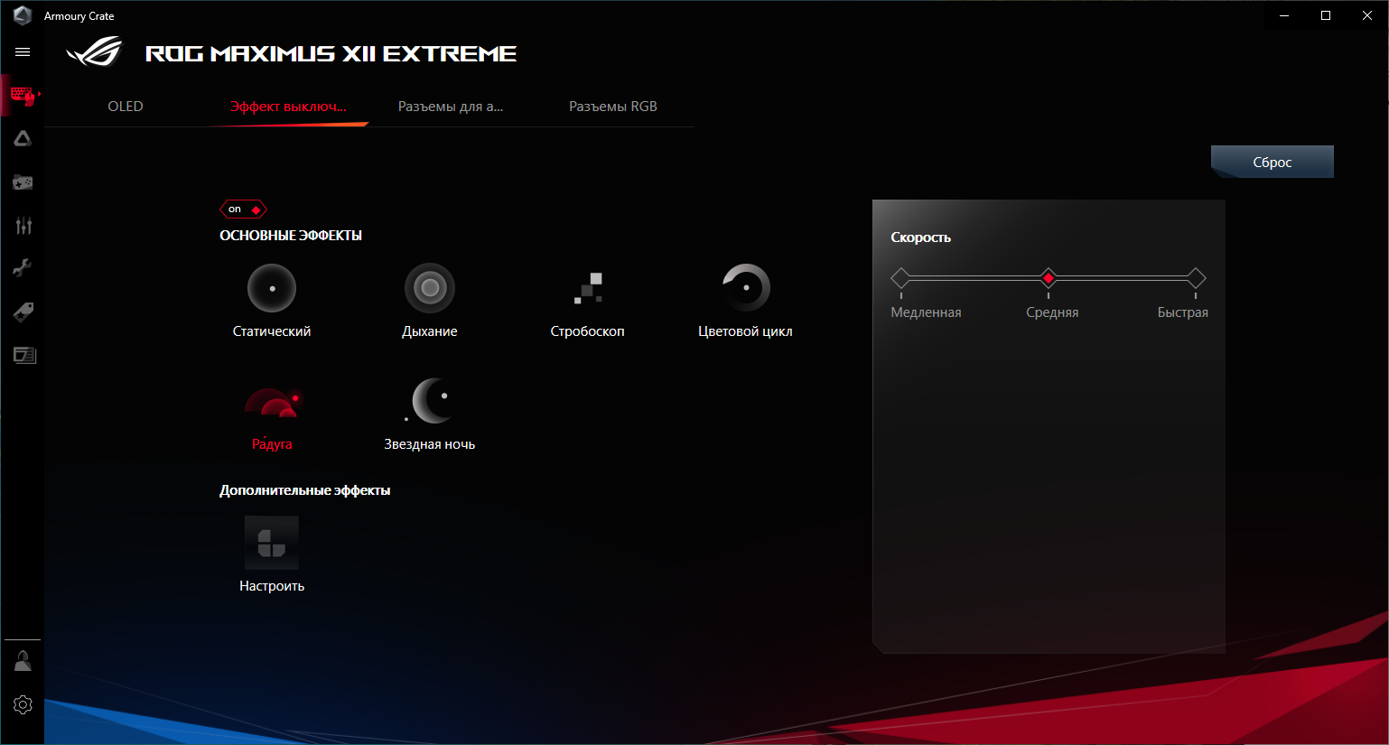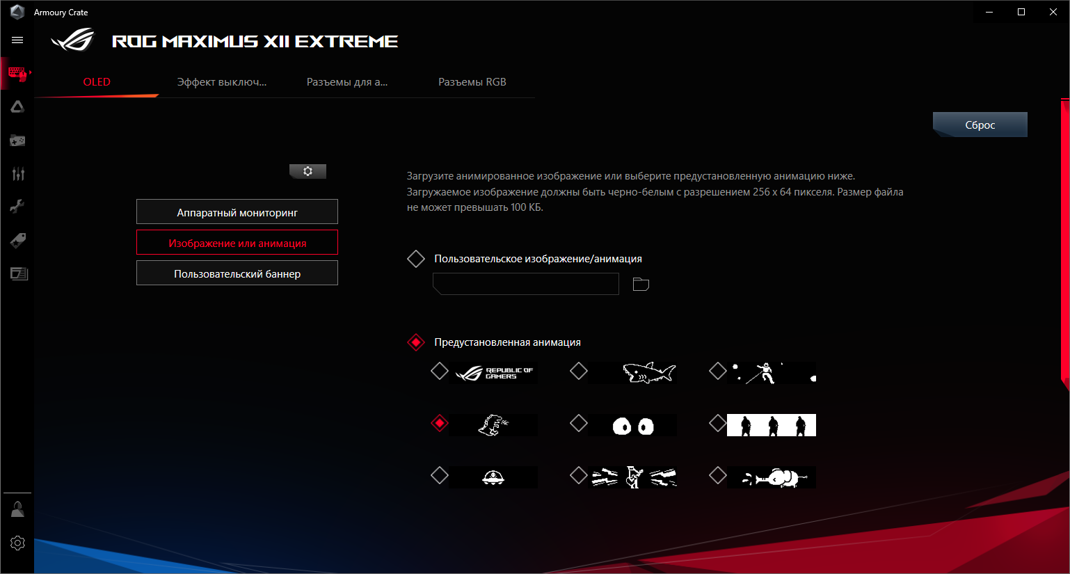Еще в плюсы ROG Maximus XII Extreme надо добавить наличие OLED-экрана, на который очень полезно выводить данные мониторинга системы. И плюс ко всему перечисленному — очень эффектная подсветка, включая широкие возможности для подключения дополнительных RGB-устройств.