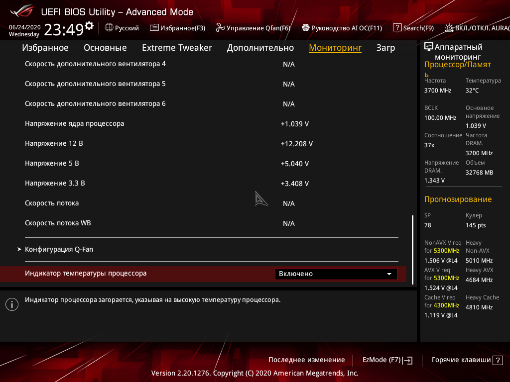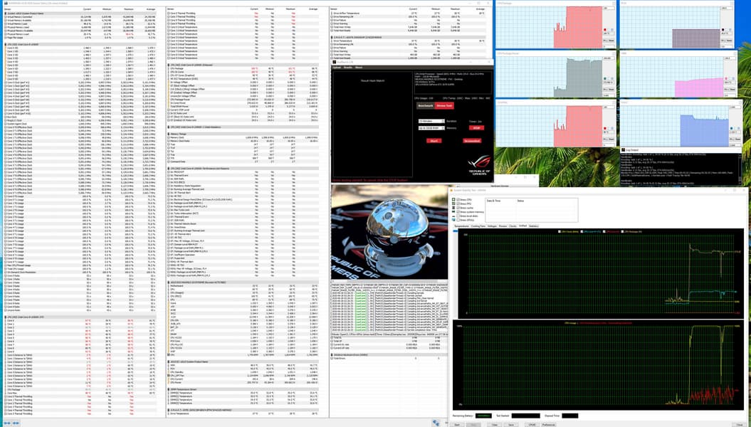 Чтобы долго не «рассусоливать» тут, скажу, что удалось получить даже 5,4 ГГц по всем ядрам, но на короткий срок. Все же СО должна быть более мощной. Снижение до 5,3 ГГц при жестко выставленном вольтаже VCore 1,33В помогло получить стабильность в работе. Однако все же температуры нагрева CPU были где-то выше 95 °C, так что, мощная ЖСО просто необходима. Очевидно, что матплата способна дать большее, и возможность получения даже 5,4 ГГц по всем ядрам имеется: дайте только очень и очень мощную СО. Пока у нас такой нет, увы.