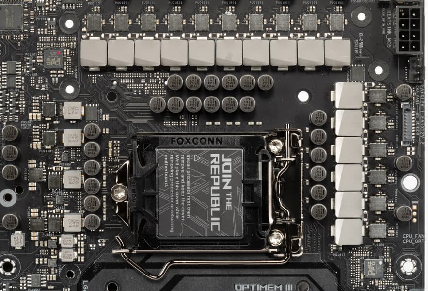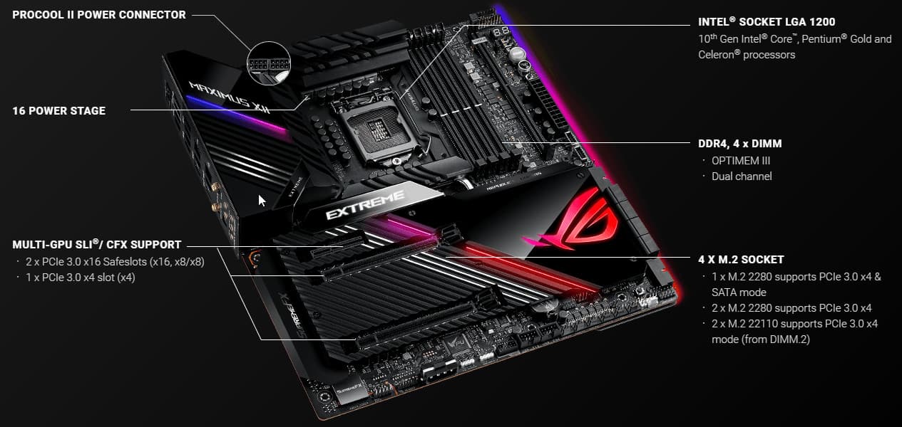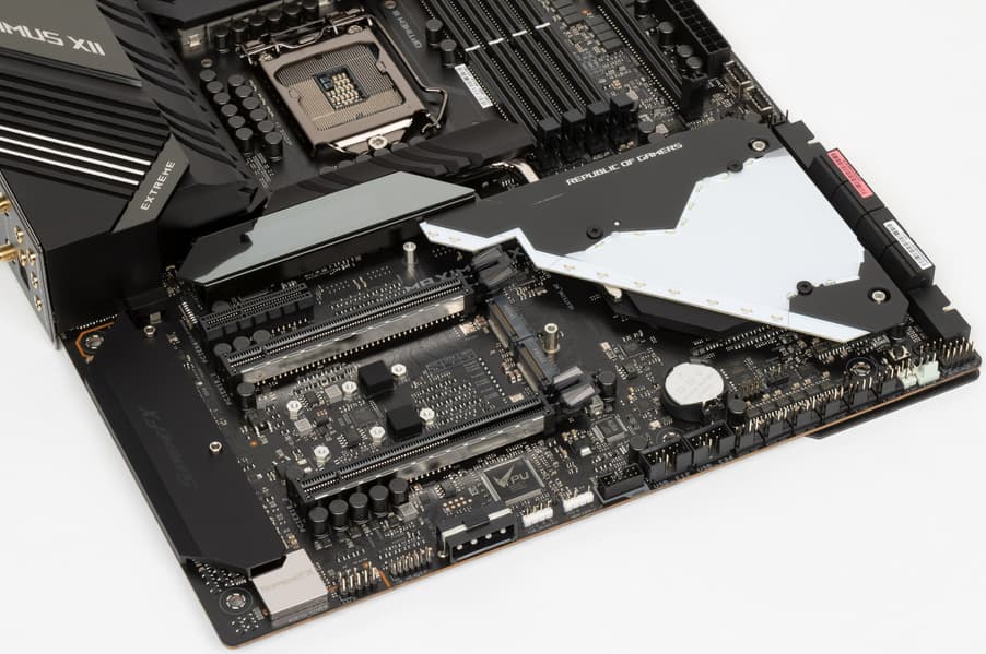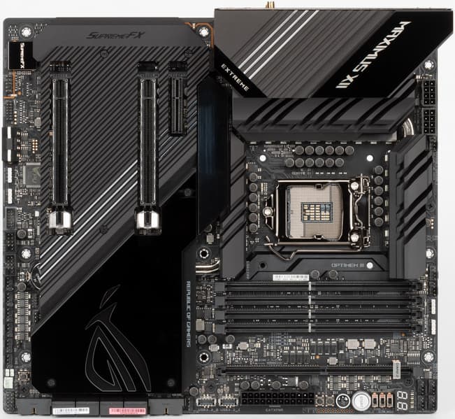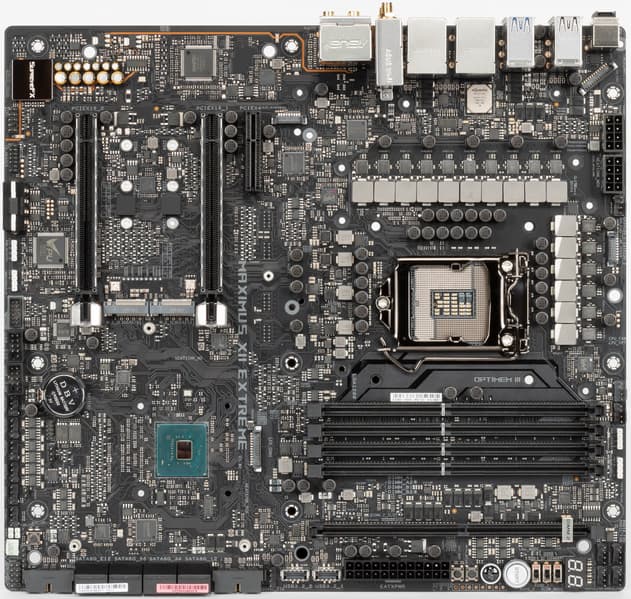 Еще раз надо напомнить, что ROG Maximus XII Extreme поддерживает процессоры Intel Core 10-го поколения, выполненные под разъем (сокет) LGA1200. Система крепления систем охлаждения для CPU точно такая же, как и для LGA1151 (прежние кулеры подойдут).