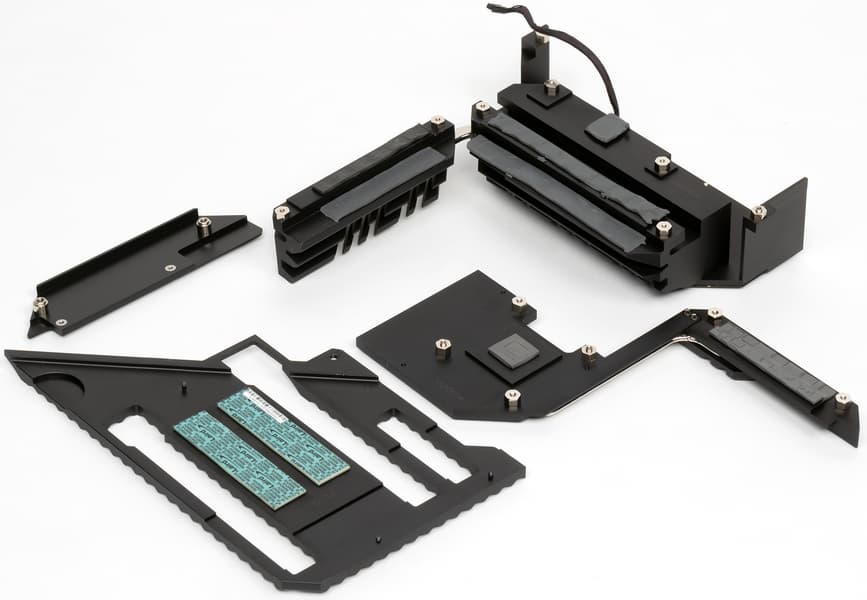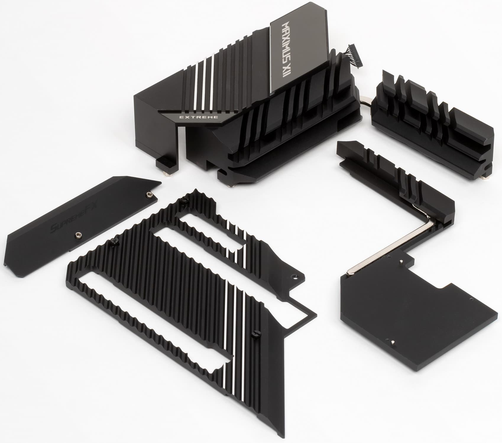 VRM-секция имеет свой мощный двухсекционный радиатор, а радиатор, охлаждающий чипсет, имеет фигурное ответвление с тепловой трубкой для охлаждения преобразователей питания блока VCCIO и VCCSA.