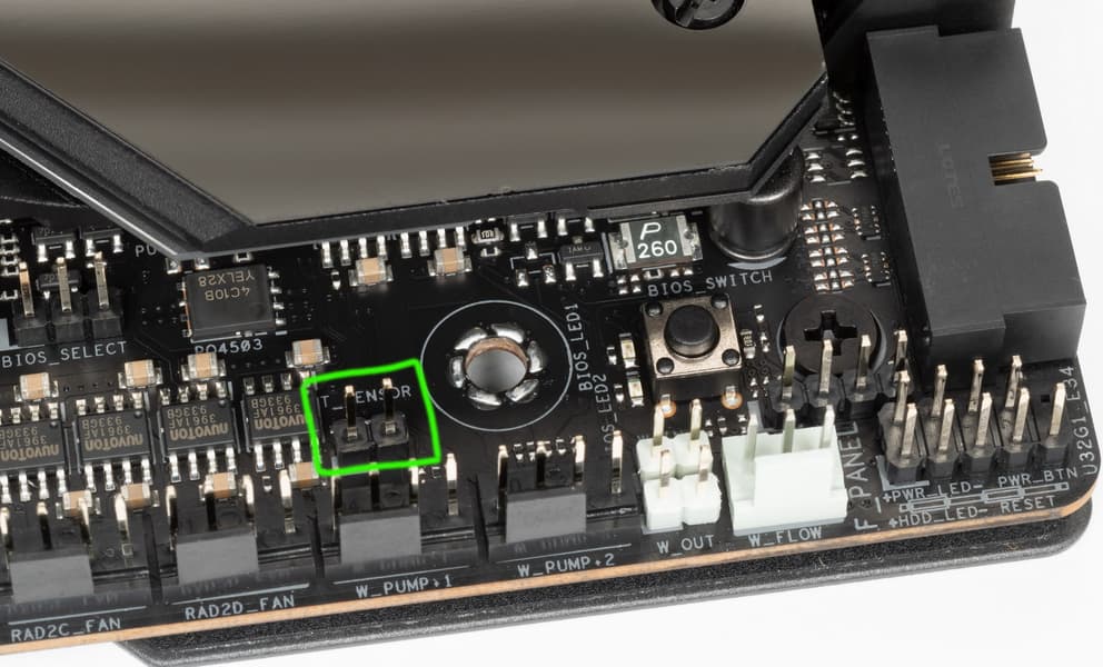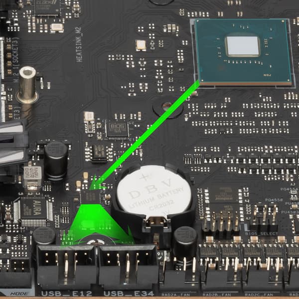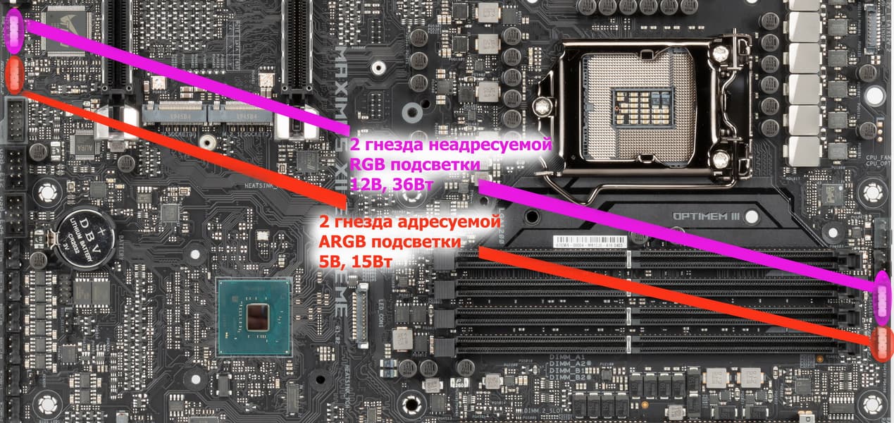 И напомню, что чипсетный радиатор тоже имеет пластиковый кожух, рассеивающий подсветку из светодиодов, установленных на самой PCB около Z490.