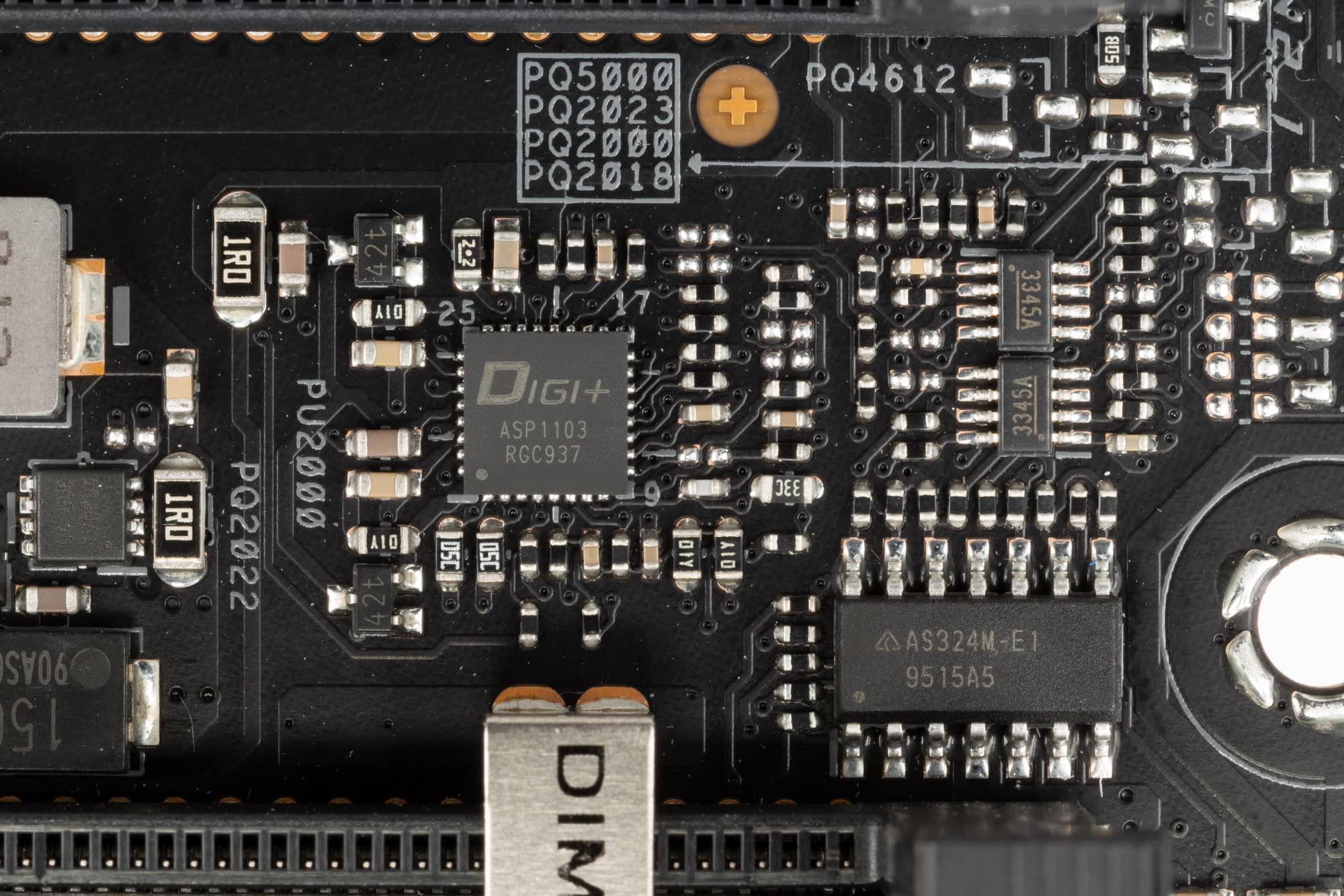 Традиционно для ROG используются цифровые контроллеры Digi+ EPU ASP1405I (этот контроллер рассчитан максимум на 7 фаз).