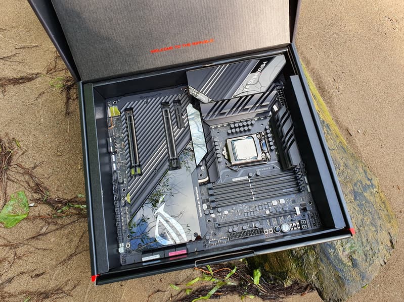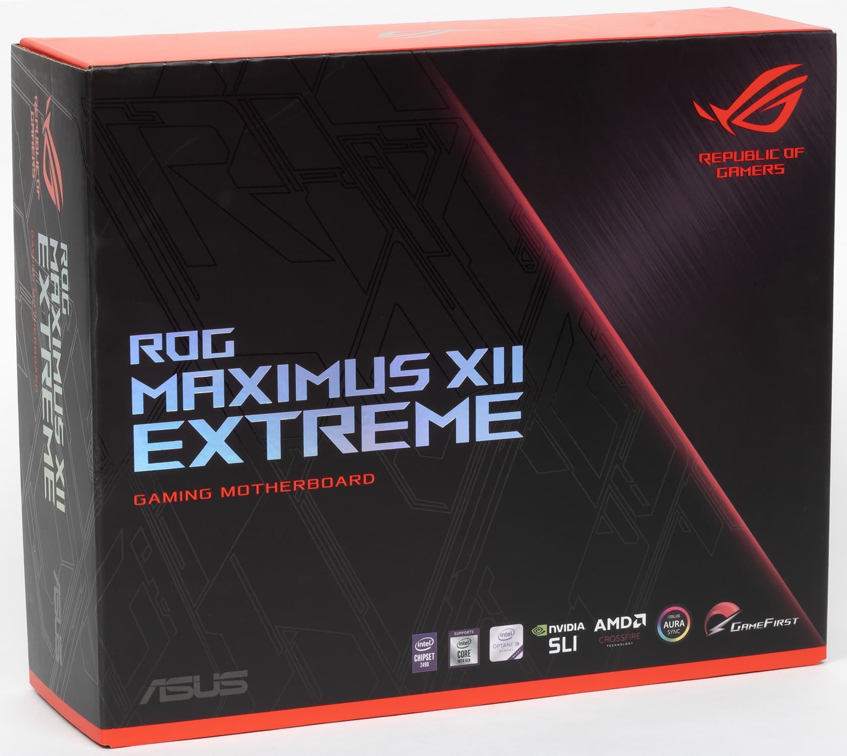 ROG Maximus XII Extreme поставляется в большой и толстой коробке с фирменным дизайном ROG.