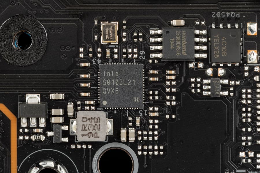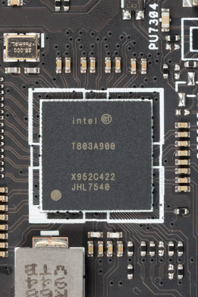Материнская плата оснащена средствами связи просто великолепно! Имеется скоростной Ethernet-контроллер Intel I225-V, способный работать по стандарту 2,5 Гбит/с.