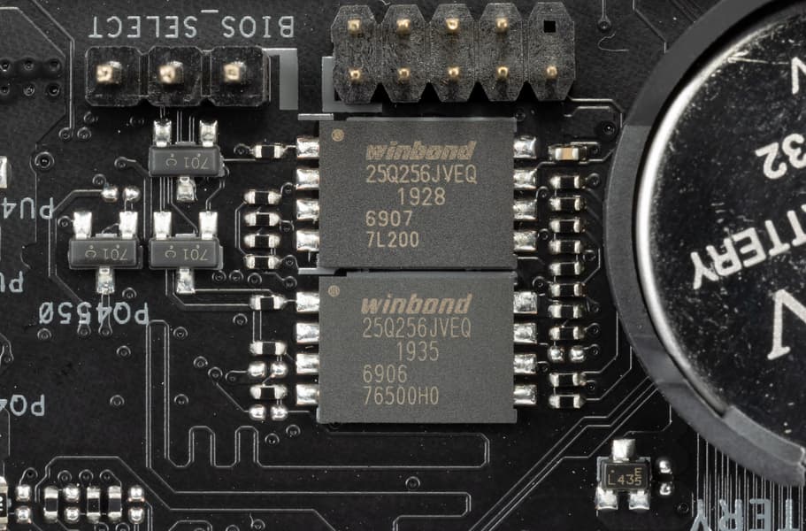 Слоты DIMM не имеют металлической окантовки, которая препятствует деформации слотов и печатной платы при установке модулей памяти и защищает от электромагнитных помех, и которая обычно всегда является составной частью флагманского набора у материнских плат (и это как бы странно), но при этом усилена пайка для стабильной передачи электросигнала.