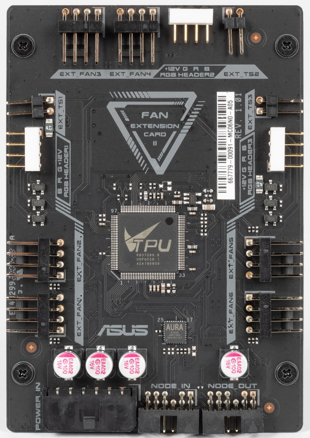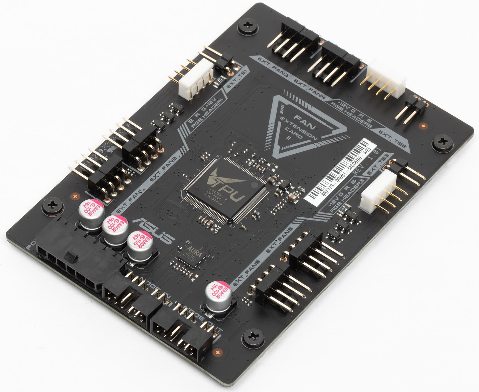 Кроме того, что размещено на текстолите, в комплекте поставки имеются уже упомянутая плата с дополнительными разъемами подключения вентиляторов, а также карта расширения Thunderbolt 3-TR Expansion card, оснащающая данную материнскую плату интерфейсом Thunderbolt 3. Это добавляет еще 2 очень быстрых USB-порта к штатным 22.