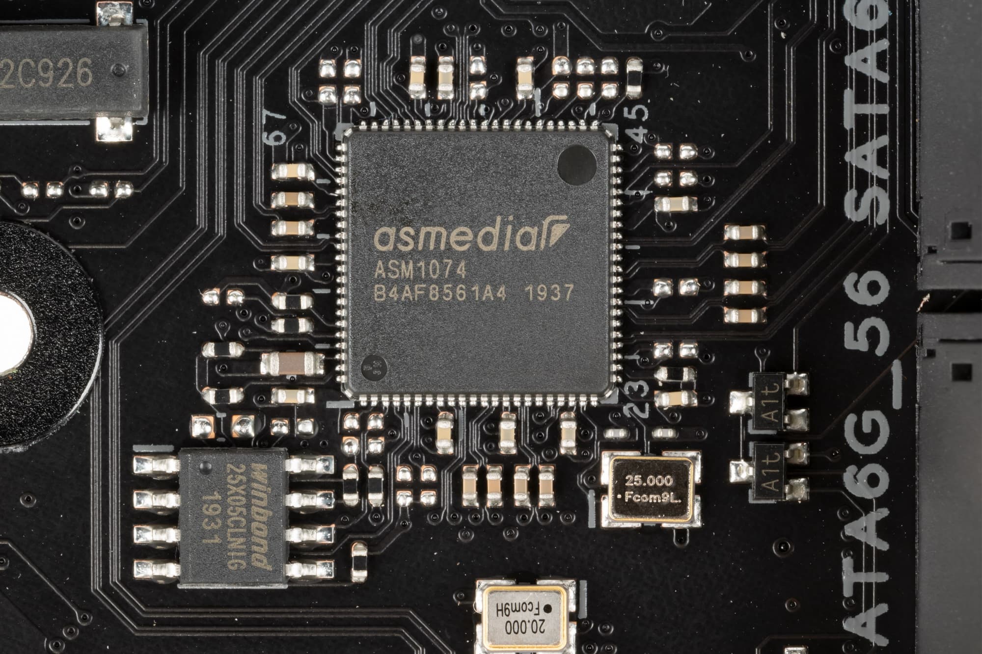 Напомню, что порты SATA 5,6 делят ресурсы с PCI-e x4, поэтому есть мультиплексор ASM1480.