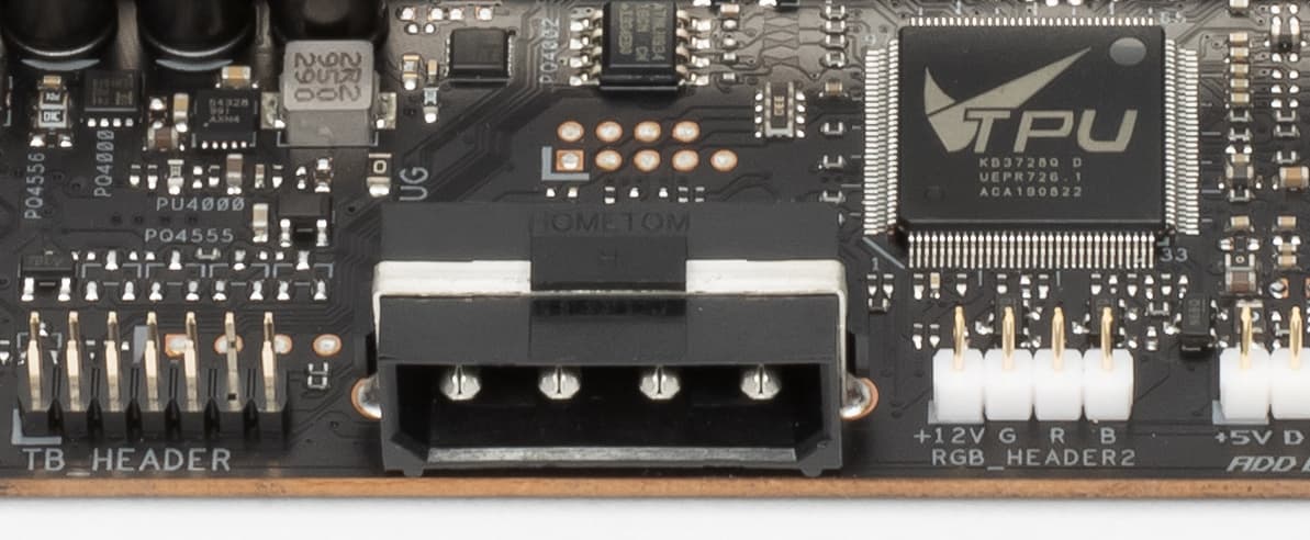 Для случая использования двух мощных видеокарт одновременно имеется опциональный разъем дополнительного питания типа «Molex».