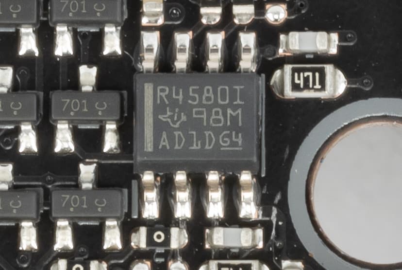 Имеется также осциллятор, обеспечивающий точную работу ЦАП. А также аудиотракт содержит двойной операционный усилитель R4580I от Texas Instruments.