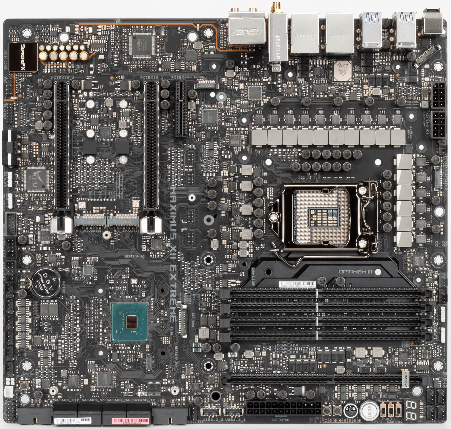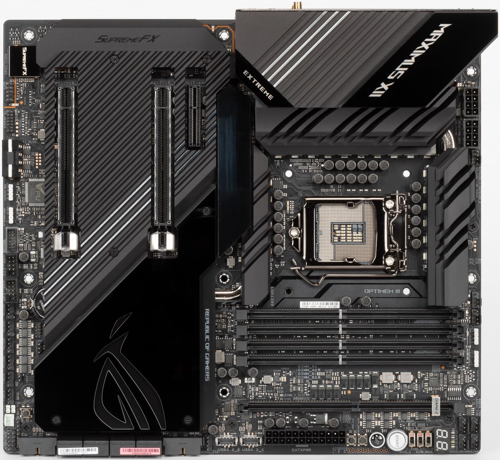 Если в начале изучения потока новых материнских плат на базе Intel Z490 у нас был экземпляр материнской платы той же серии ROG Maximus XII, но уровнем попроще — Hero, то теперь очередь дошла и до «самой — самой», то вершины линейки ROG для чипсета Z490 — ROG Maximus XII Extreme.