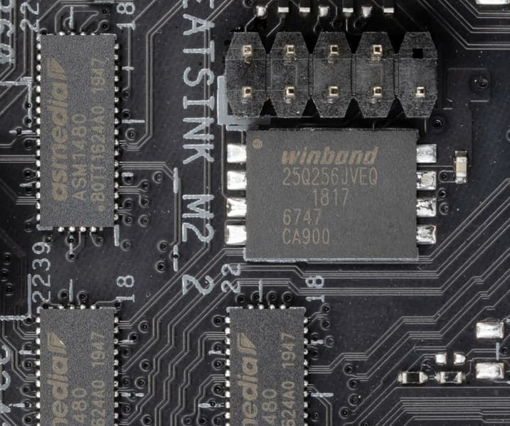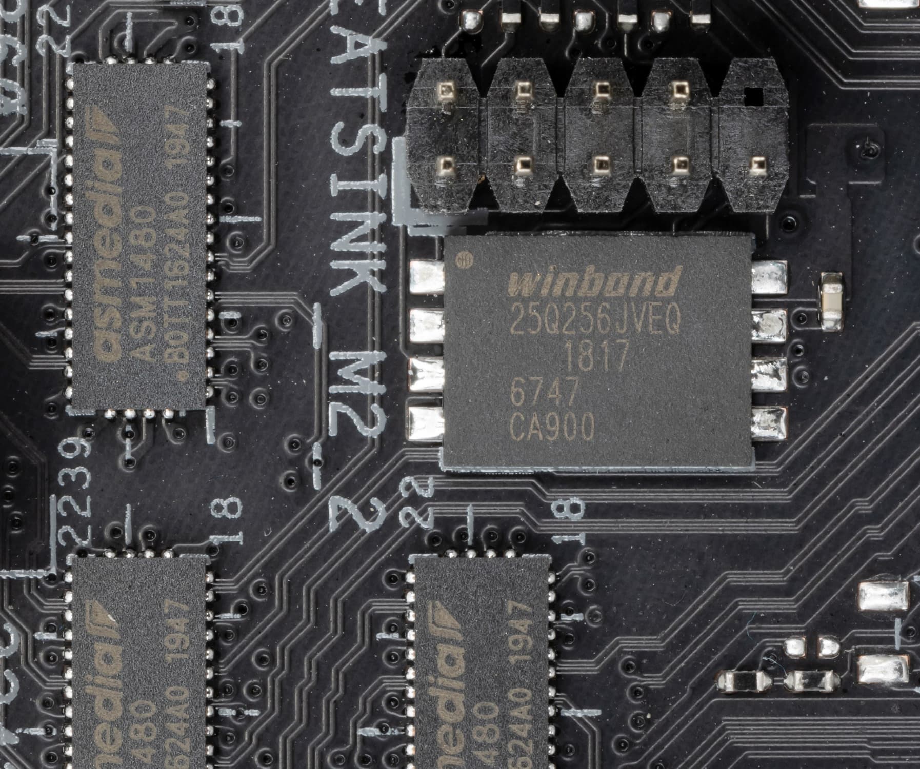 Напомню, что некоторые порты SATA делят ресурсы с портами M.2, поэтому тоже есть мультиплексор ASM1480.
