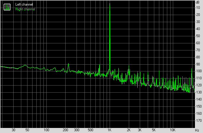 Для тестирования выходного звукового тракта, предназначенного для подключения наушников или внешней акустики, мы использовали внешнюю звуковую карту Creative E-MU 0202 USB в сочетании с утилитой RightMark Audio Analyzer 6.4.5. Тестирование проводилось для режима стерео, 24-бит/44,1 кГц. Во время тестирования ИБП тестового ПК физически отключался от электросети и работал на аккумуляторе.