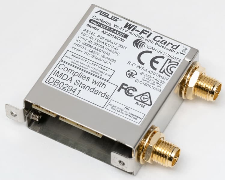 | Сетевые контроллеры | 1 × Intel WGI219-AT Ethernet 1 Гбит/с 1 × Marvel AQtion AQC111 (Ethernet 5 Гбит/с) 1 × Intel Dual Band Wireless AX201NGW/CNVi (Wi-Fi 802.11a/b/g/n/ac/ax (2,4/5 ГГц) + Bluetooth 5.0) |