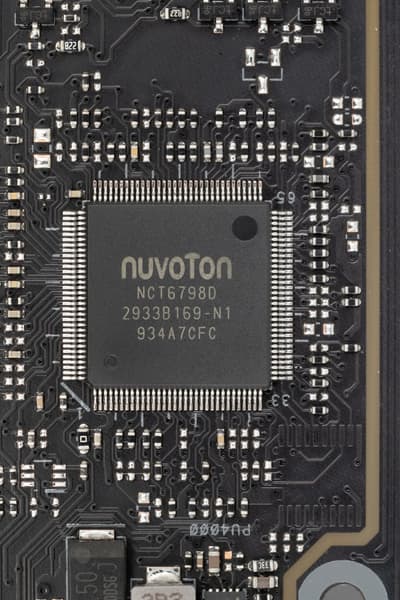 VRM-секция имеет свой мощный трехсекционный радиатор, а еще один небольшой радиатор имеется около задней панели — призван охлаждать Marvel Aqtion AOC111 (скоростной сетевой контроллер). Три секции радиатора VRM связаны тепловой трубкой под прямым углом друг ко другу и охлаждают силовые преобразователи всех трех схем питания CPU.