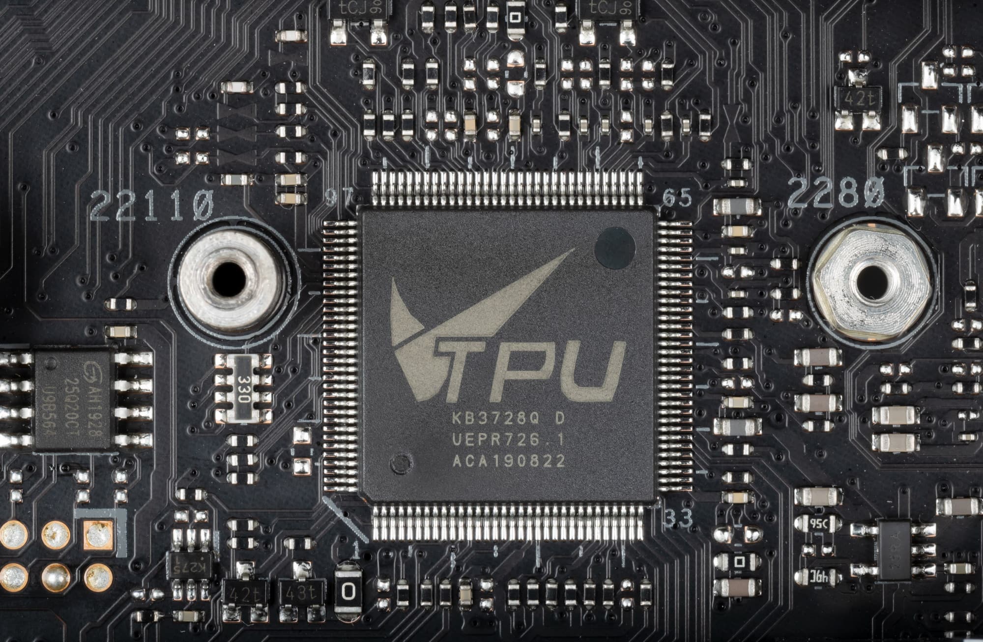 Конечно, мы привыкли, что самым честным является подход, когда ШИМ-контроллер дает прямые сигналы каждой сборке. Но при этом сделать разводку под честные фазы и поставить ШИМ-контроллер, умеющий работать с таким количеством фаз — много сложнее и дороже. Подход Asus/ROG тоже в принципе хорош (хоть и не является буквально честным). Все же удвоителей и тупо поделенных фаз нет. Есть контроллер TPU, который совместно с рядом иных распределяет фазы (ему помогают в этом «разбросанные» по плате переключатели от uPI Semiconduictor