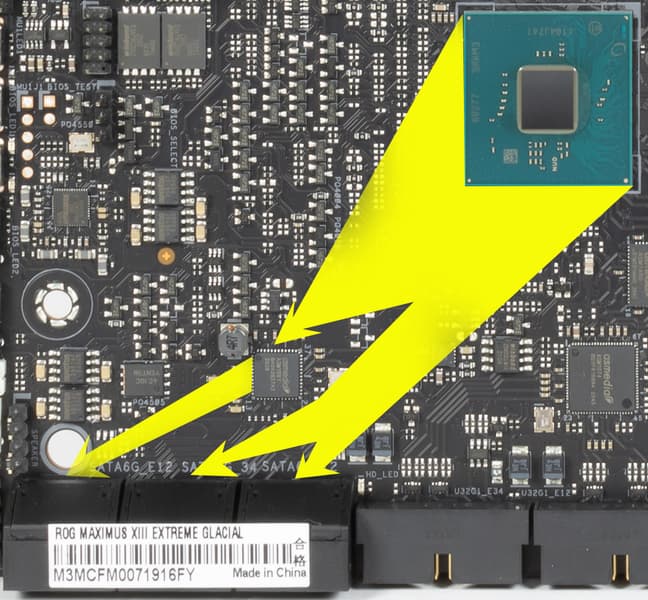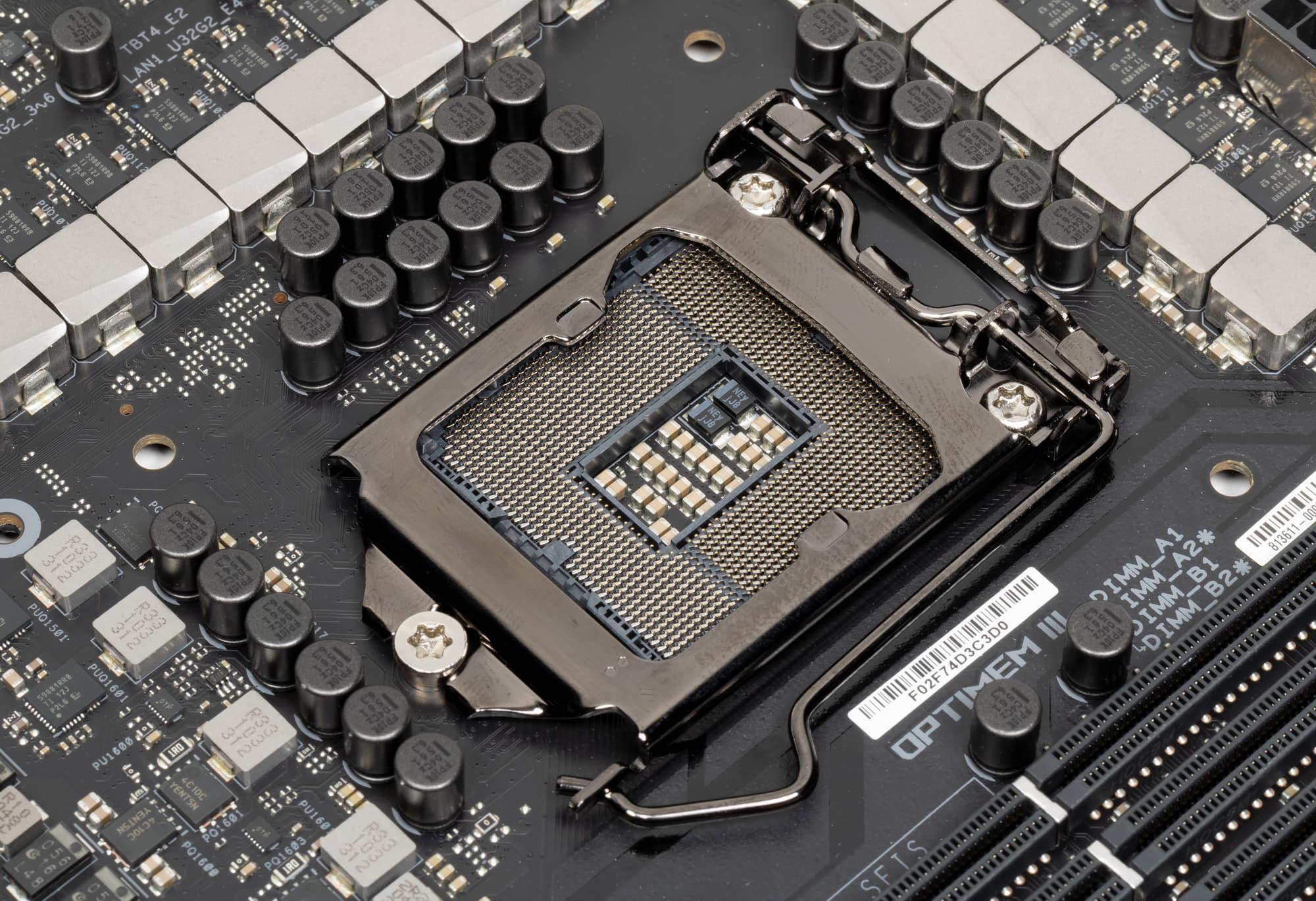 Еще раз надо напомнить, что Asus ROG Maximus XIII Extreme Glacial поддерживает процессоры Intel Core 10-го и 11-го поколения, выполненные под разъем (сокет) LGA1200. Система крепления систем охлаждения для CPU точно такая же, как и для LGA1151.
