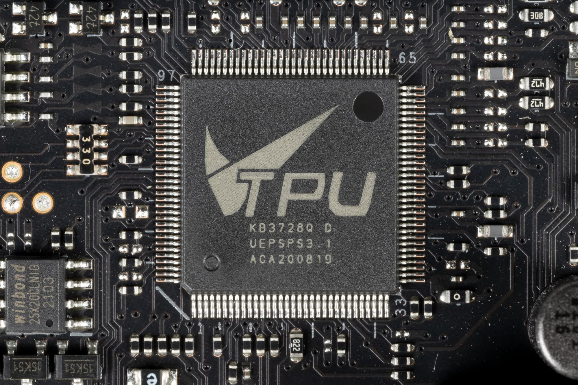 Хорошо известно, что инженеры Asus никогда не пользуются удвоителями фаз для управления огромным их количеством, ведь ШИМ-контроллеры в большинстве своем умеют работать с 8-ю (реже с 12) фазами. Практически на всех материнских платах среднего и топового уровней можно найти фирменный цифровой контроллер TPU, который как раз и занимается умными сборками фаз питания для ШИМ-контроллера. В частности тут имеем: