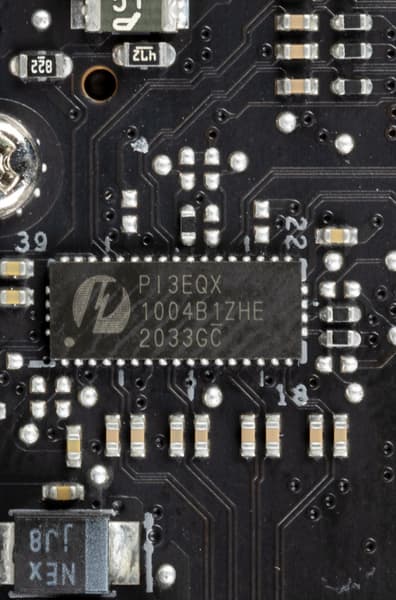 Как видим, перераспределение линий PCIe между слотами у этой материнки имеется, поэтому востребованы мультиплексоры от Diodes Inc. (ex Pericom).