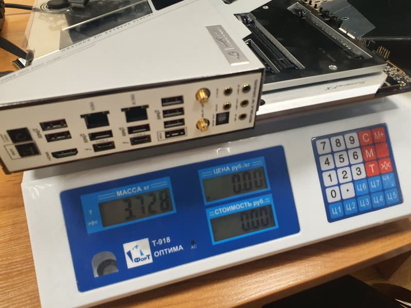 Материнка вместе с ним весит весьма прилично: около 4х килограммов. Поэтому, разумеется, для монтажа такого «девайса» потребуются очень крепкие корпуса.