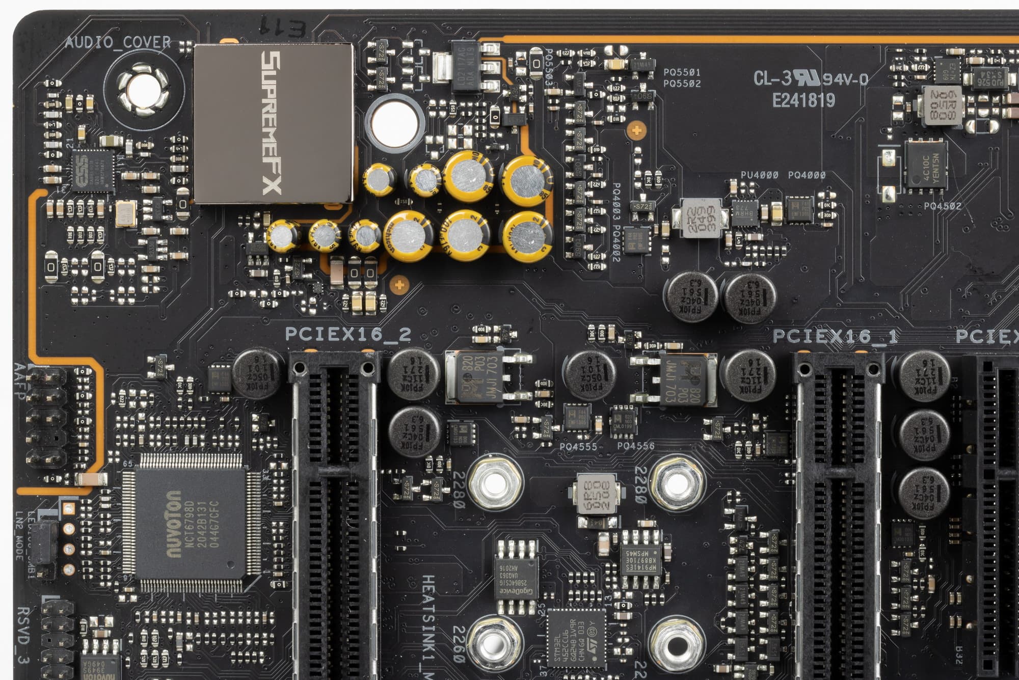 В традициях Asus накрывать микросхему кодека металлическим колпачком с собственным названием аудиоподсистемы SupremeFX.