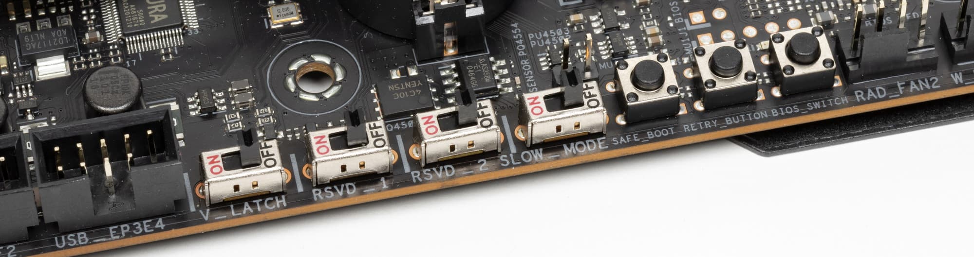 | Прочие внутренние элементы | 24-контактный разъем питания ATX 2 8-контактный разъем питания EPS12V 1 6-контактный разъем питания PCIe12V 1 слот M.2 (E-key), занят адаптером беспроводных сетей 1 разъем для подключения порта USB 3.2 Gen2x2 Type-C 1 разъем для подключения порта USB 3.2 Gen2 Type-C 2 разъема для подключения 4 портов USB 3.2 Gen1 2 разъема для подключения 4 портов USB 2.0 8 разъемов для подключения 4-контактных вентиляторов и помп ЖСО 1 разъем для подключения неадресуемой RGB-ленты 3 разъема для подключения адресуемой ARGB-ленты 1 разъем аудио для передней панели корпуса 1 разъем для сброса CMOS 1 кнопка OC Retry 1 кнопка Safe Boot 1 переключатель Slow Mode 1 переключатель V_Latch 1 разъем для термодатчикa 3 разъема подключения фирменных помп СВО Asus 2 разъема для подключения управления с передней панели корпуса 1 кнопка включения питания Power 1 кнопка перезагрузки Reset |