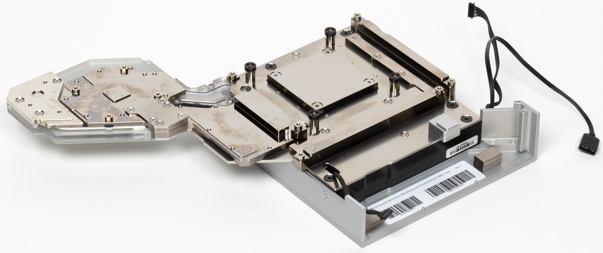 Разумеется, есть и сам водоблок, представляющий собой этакую монолитную конструкцию.
