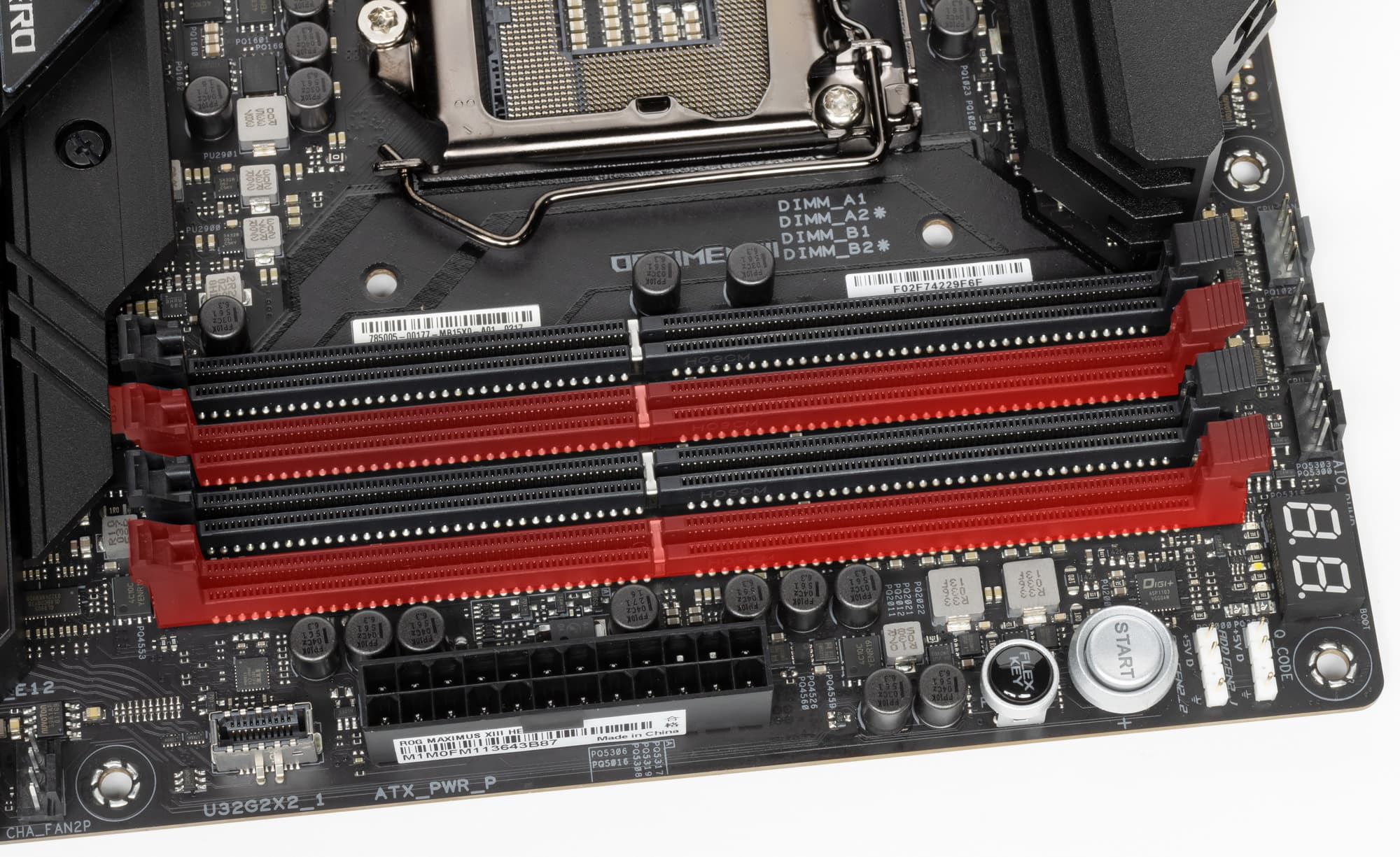 Для установки модулей памяти на плате Asus имеется четыре DIMM-слота (для работы памяти в Dual Channel в случае использования всего 2 модулей их следует устанавливать в А2 и B2. Плата поддерживает небуферизованную память DDR4 (non-EСС), а максимальный объем памяти составляет 128 ГБ (при использовании UDIMM последнего поколения по 32 ГБ). Разумеется, поддерживаются профили XMP.