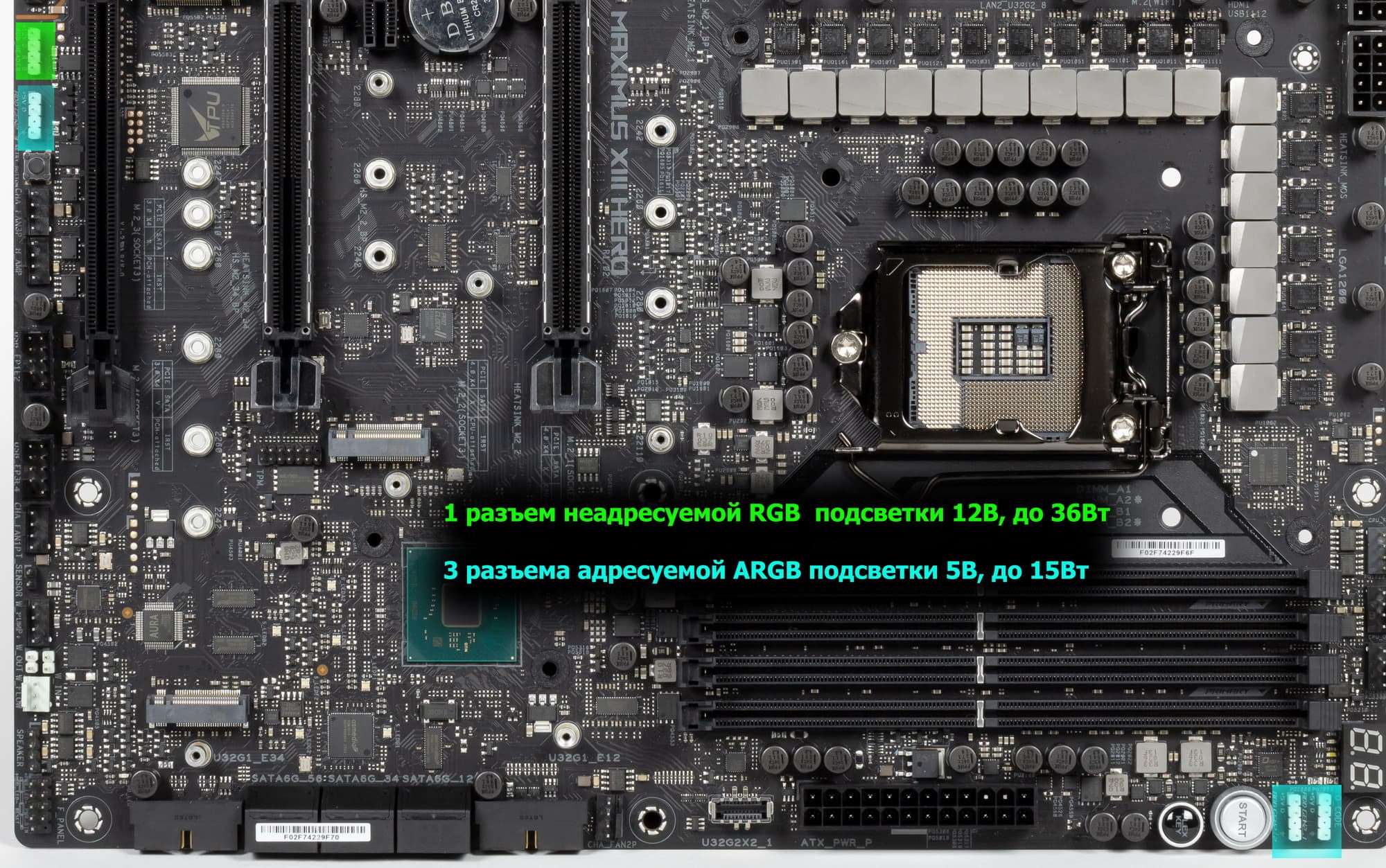В арсенале платы также есть 6 портов SATA и 8 разъемов для вентиляторов. Система питания процессора традиционно для моделей ROG очень мощная, она способна обеспечить работу любых совместимых процессоров с запасом на разгон. Плата имеет грамотную систему охлаждения каждого потенциально греющегося элемента, включая накопители в слотах M.2 (термопрокладки для охлаждения накопителей есть с обеих сторон). Сетевые возможности прекрасные: два быстрых проводных контроллера 2,5 Гбит/с и один самый современный беспроводной. Поддержка Thunderbolt 4 позволяет передавать данные на скорости 40 Гбит/с. В числе плюсов платы можно упомянуть неплохую подсветку, включая широкие возможности для подключения дополнительных RGB-устройств. Отметим и улучшенный аудиокодек Realtek ALC4082.