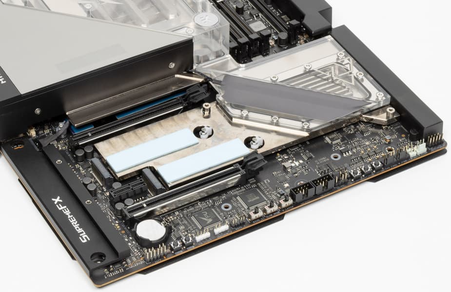 Как я уже упоминал ранее, M.2_1 покрывается водоблоком, а слоты М.2_2 и М.2_3 имеют свой общий радиатор.