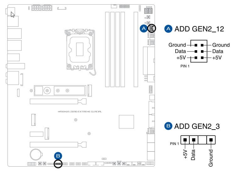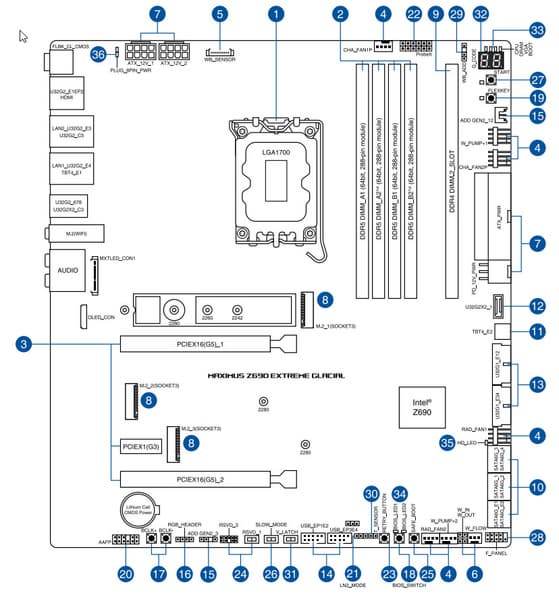 (1 линия USB 2.0); обеспечивающий двумя линиями USB 2.0 хабы ITE IT8851 и ITE IT8856 (для обеспечения USB 3.2 Gen2x2), поэтому суммарно от Z690 используется уже не 6, а 7 линий USB 2.0.