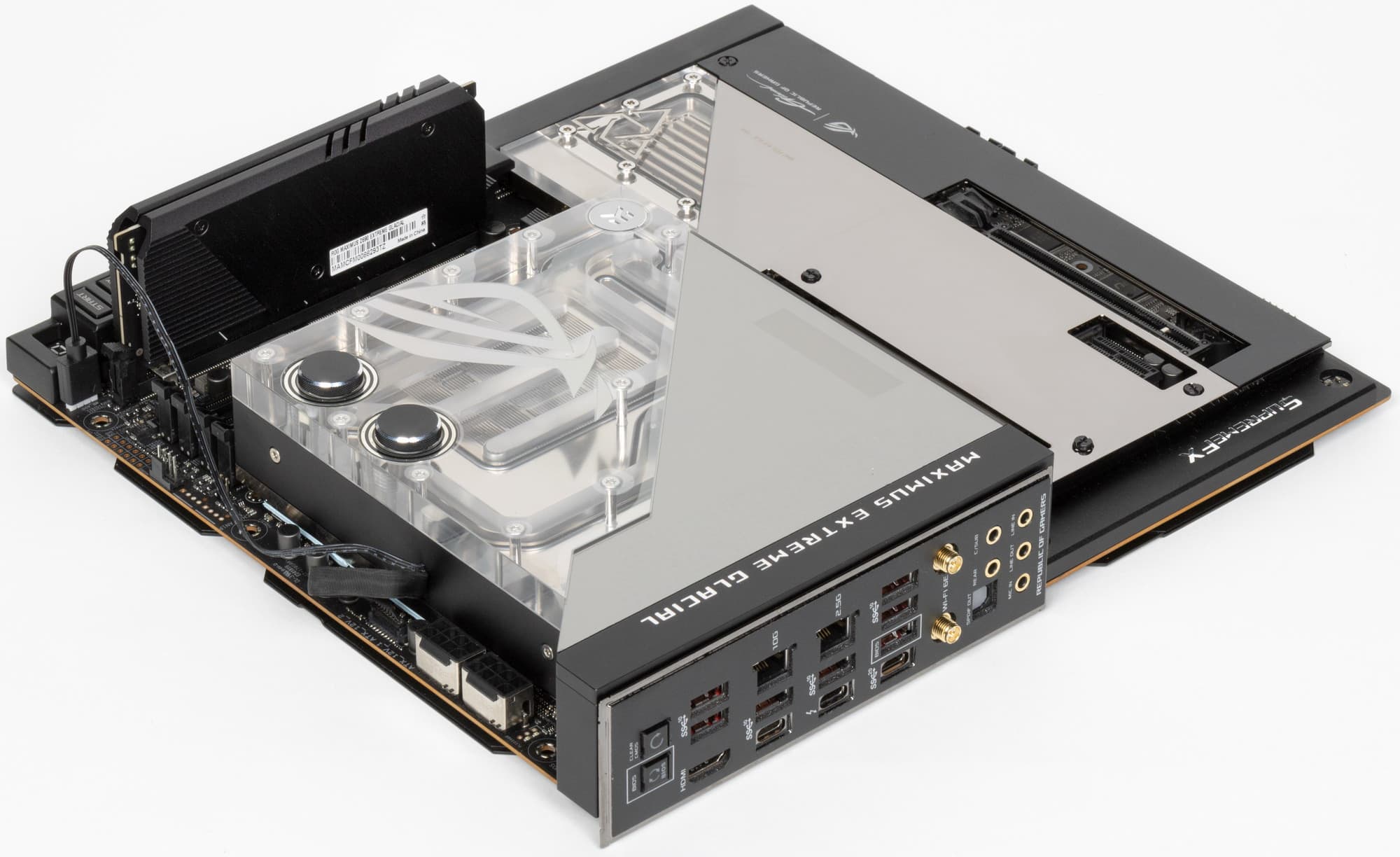 Рассматриваемая сегодня материнская плата относится к топовому суббренду ROG, при этом перед нами полноценный флагман (мы помним, что самая-самая в этой линейке — материнка c суффиксом Extreme, а данный вариант – по сути та же матплата Extreme, но имеющая водоблок для работы с кастомной СВО).