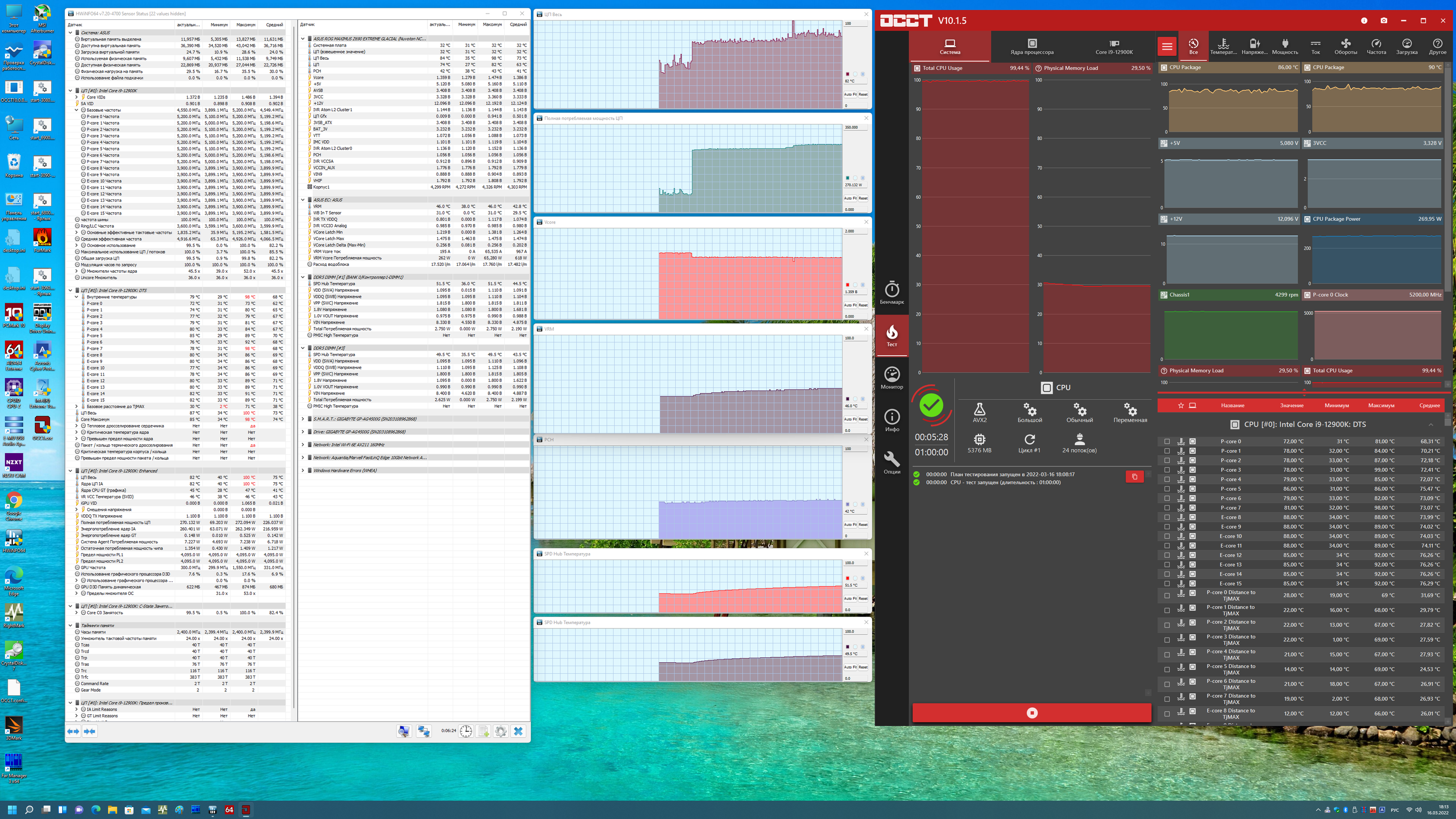 Конечно же, в этом случае нагрев процессора уже почти вплотную подходил к 98 градусам, однако на считанные мгновения, так что даже троттлинга замечено не было. Все остальные параметры работы системы по нагреву были в стандартных рамках .