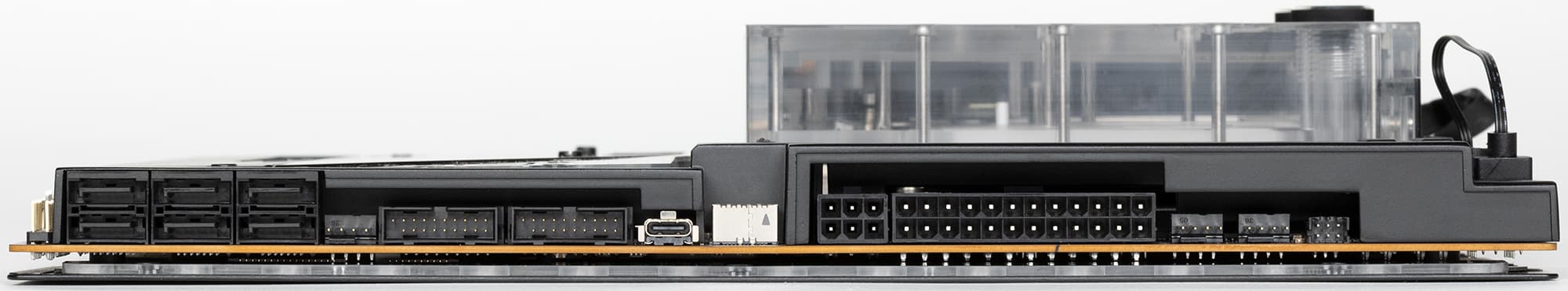 Водоблок также охлаждает и Z690, в этом месте имеется эффектная прозрачная вставка с подсветкой.