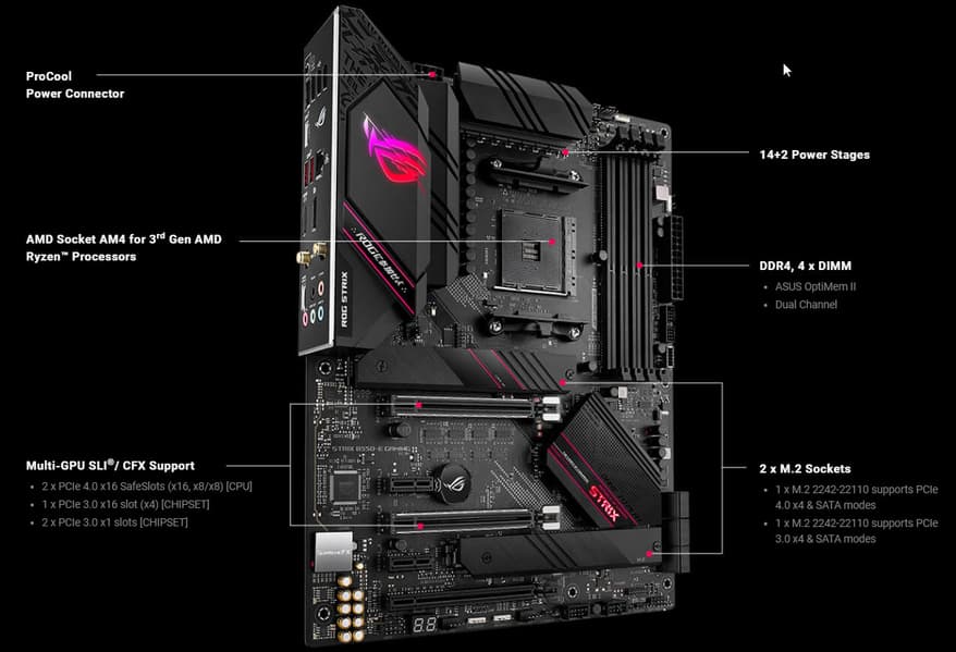 Еще раз надо напомнить, что ROG Strix B550-E Gaming поддерживает процессоры AMD Ryzen 3-го поколения, выполненные под разъем (сокет) AM4. Но, как показала практика, процессоры предыдущих поколений также поддерживаются.