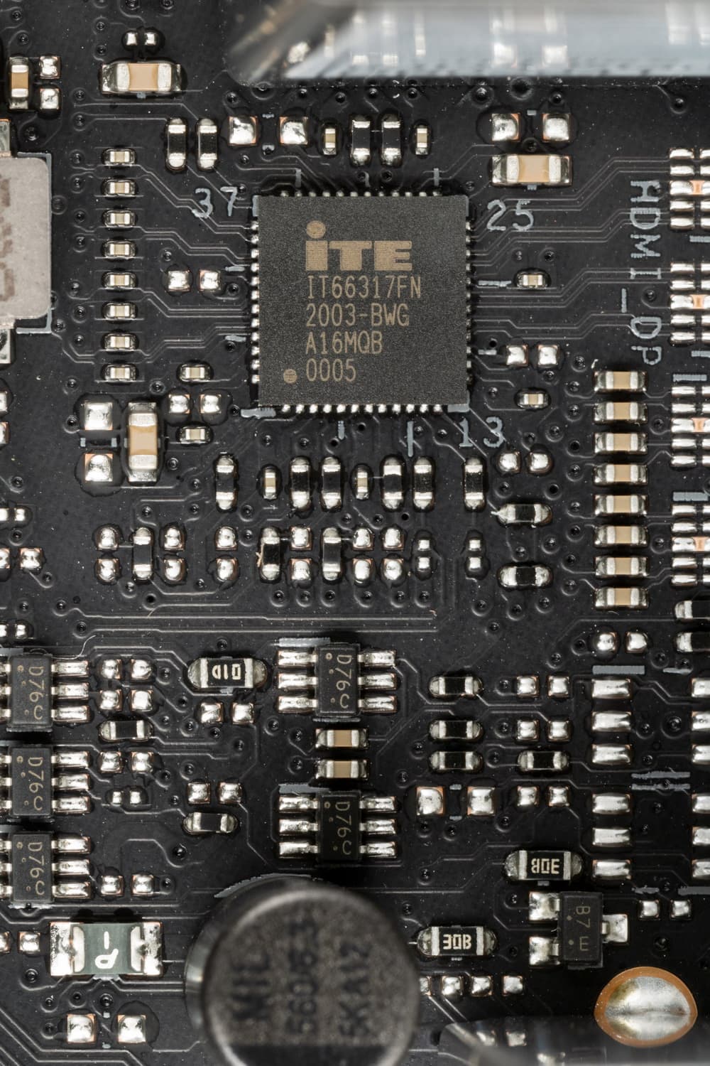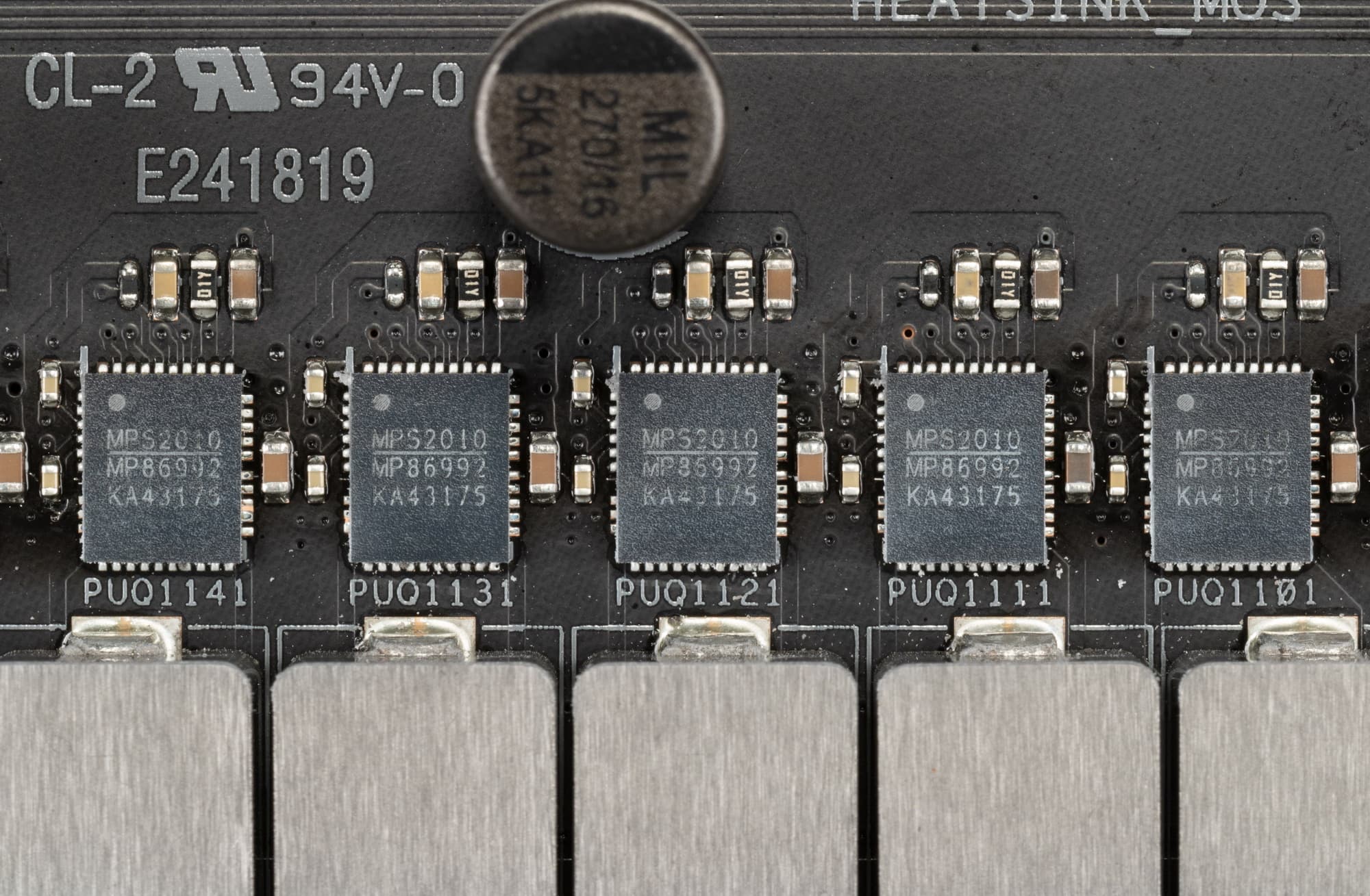Каждый канал фазы имеет суперферритовую катушку и MOSFET MP86992 от Monolithic Power Systems.