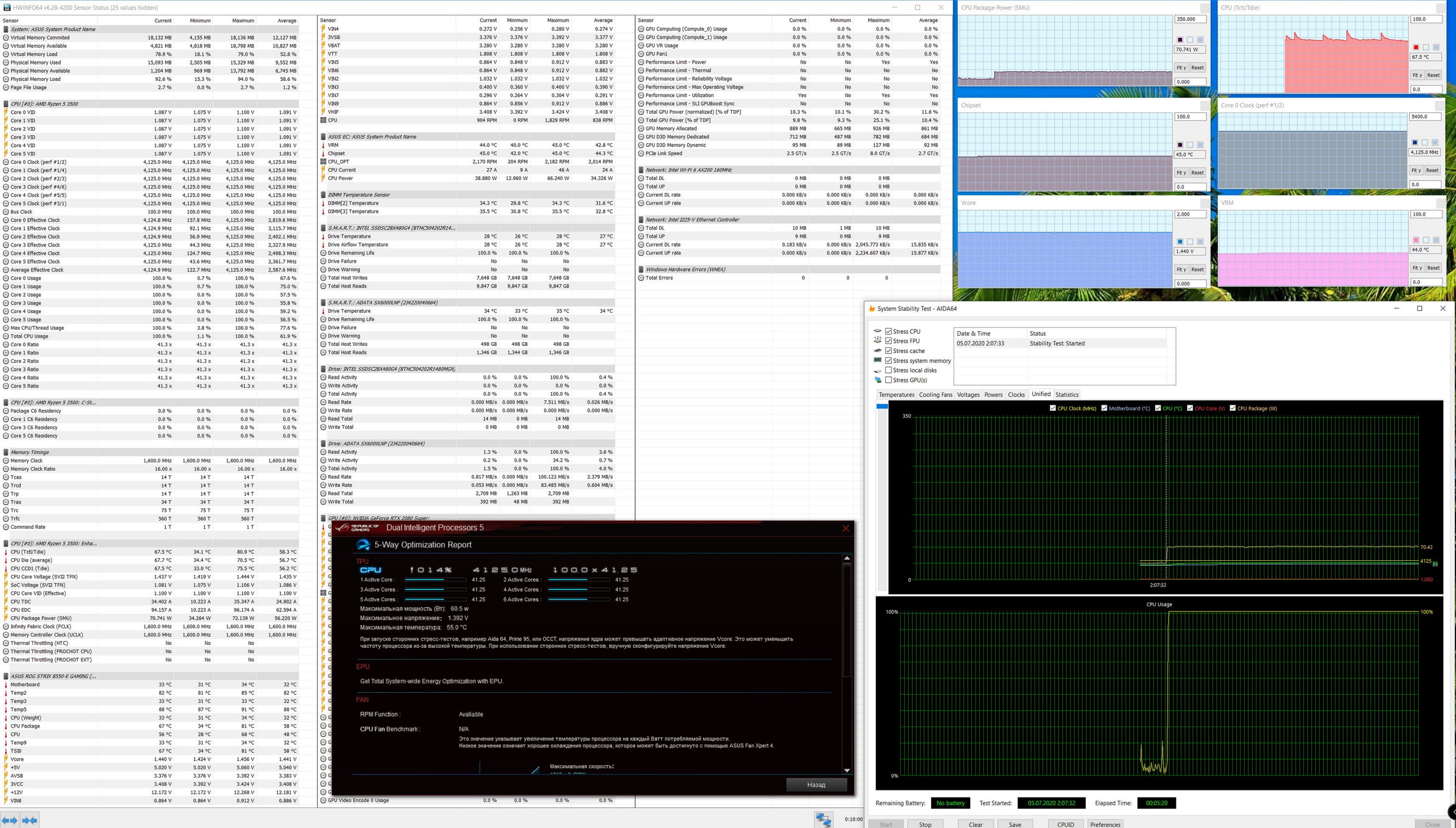 Запускаем все в режиме по умолчанию. Затем нагружаем тестами от AIDA, и CPU-Z.