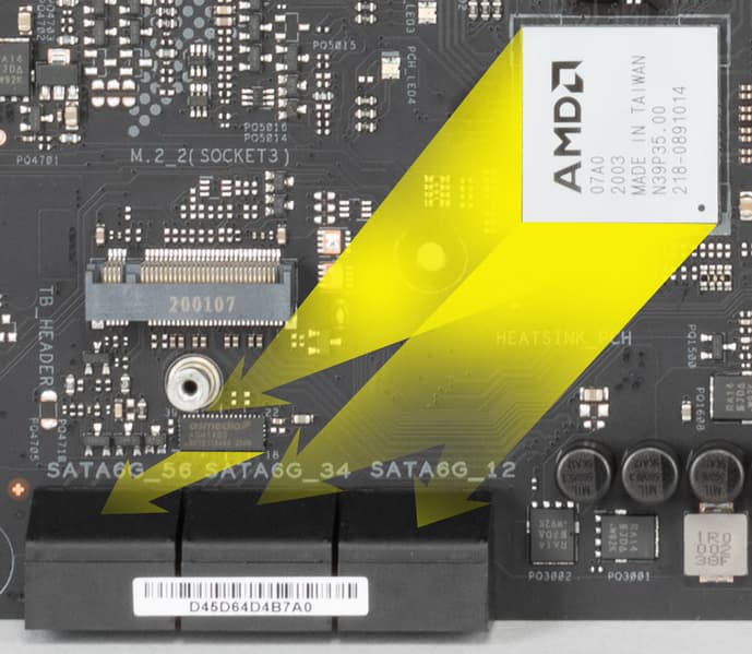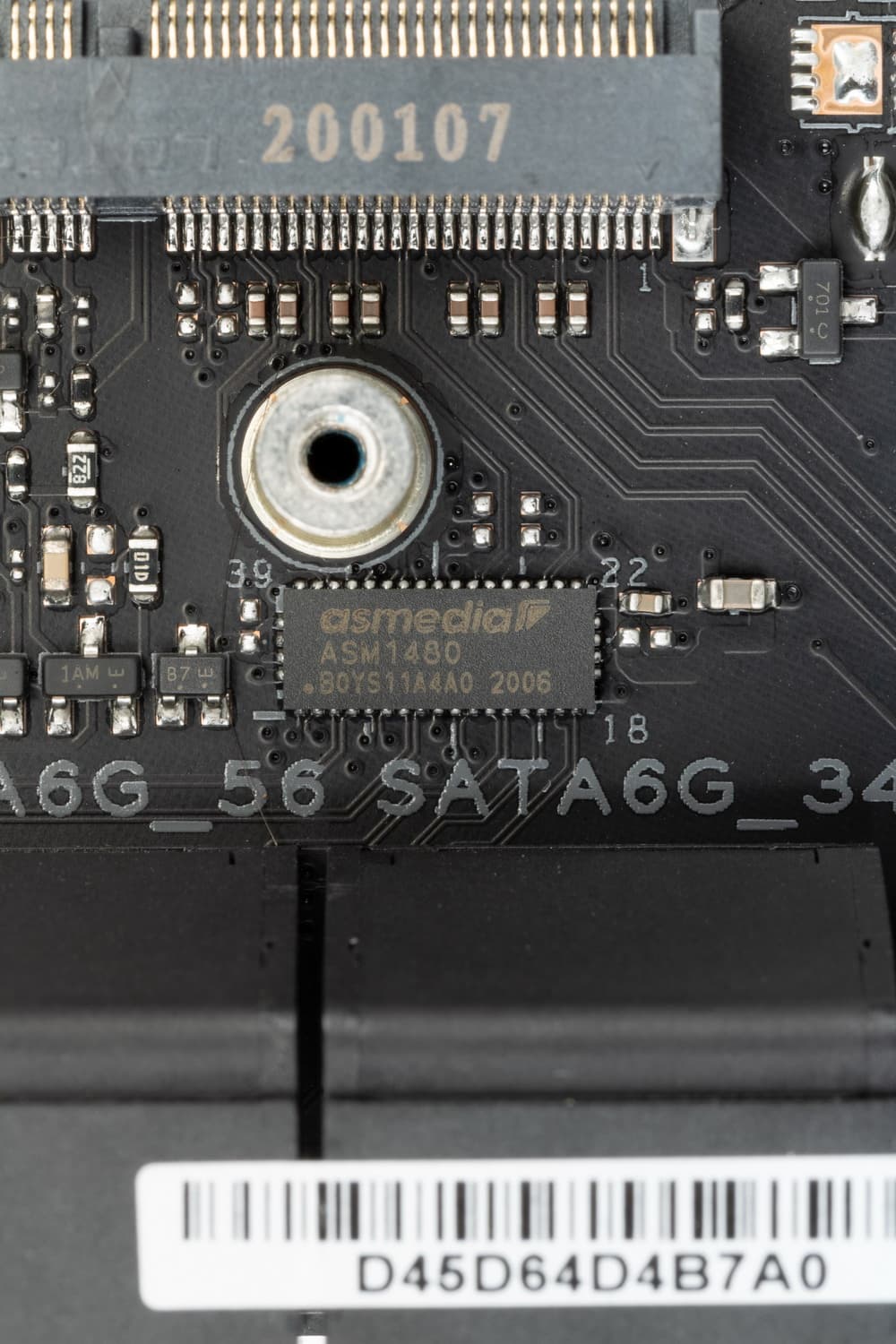 Напомню, что порты SATA 5,6 делят ресурсы с M.2_2, поэтому есть мультиплексор ASM1480.