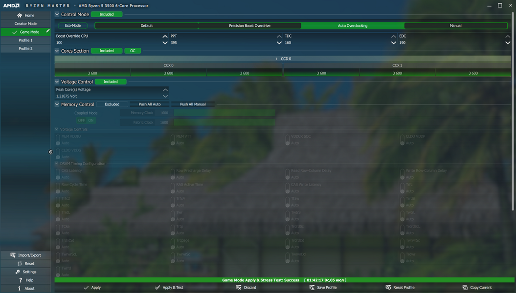 Осталось лишь попробовать фирменный инструмент от AMD — Ryzen Master. Эта программа тщательно «щупает» системные ресурсы (прежде всего систему питания), тестирует максимально возможные частоты работы процессора при условии гарантии стабильности работы. Раз у нас геймерская матплата, то сам Бог велел запустить Gamer Mode и попробовать авторазгон.