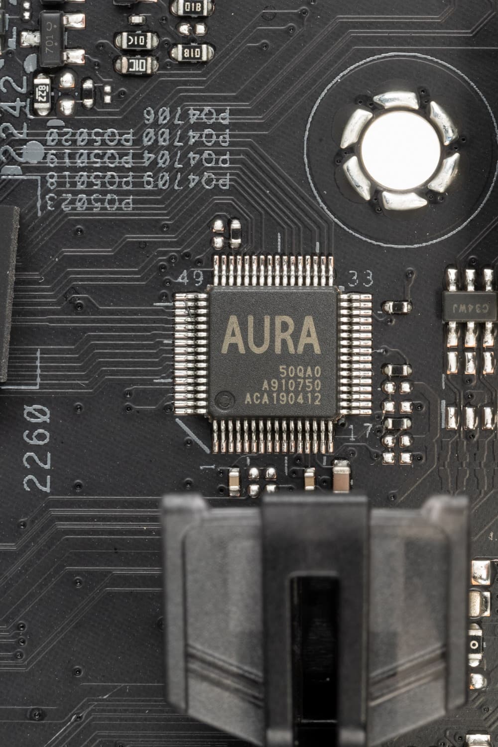 Итак, через чипсет B550 реализовано 2 USB 3.2 Gen1 + 1 USB 3.2 Gen2 = 3 выделенных порта. Плюс 2 контроллера Genesys Logic GL852S имеют связь с B550 через 2 линии USB 2.0, плюс 1 порт USB 2.0 выделен для реализации аудиовывода (поговорим об этом позже), технология BIOS Flashback задействует 2 порта USB 2.0, а также один USB 2.0 использует контроллер Aura.