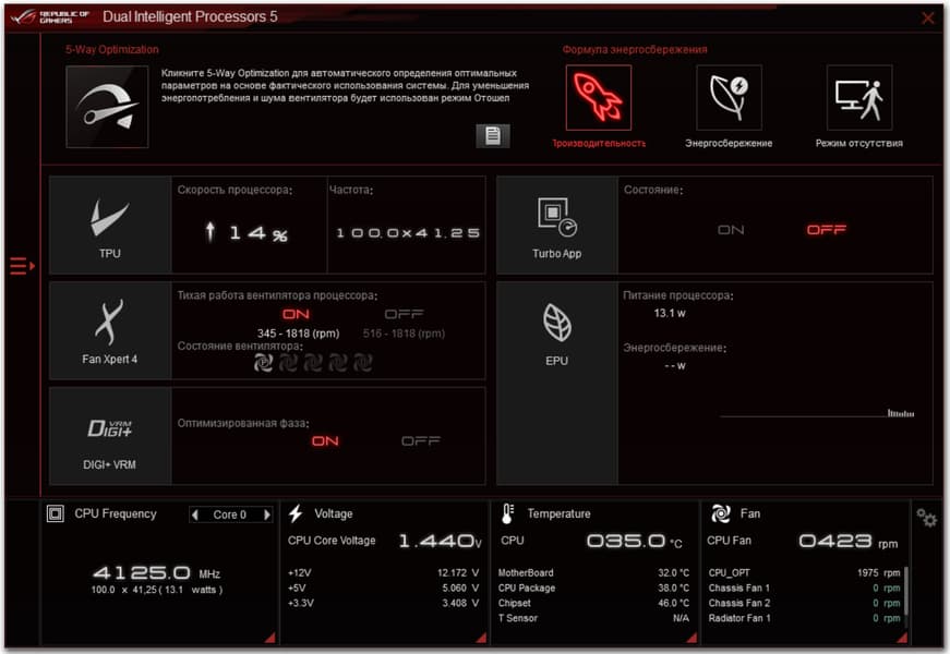 Получили прирост частоты до 4,0 ГГц. Ну как-то скромно. Ощущение, что включение AI Overclocking не снимает барьеров, не включает CPB на всю катушку. ОК, выключаем EZ System Tuning, восстанавливаем все параметры по умолчанию.