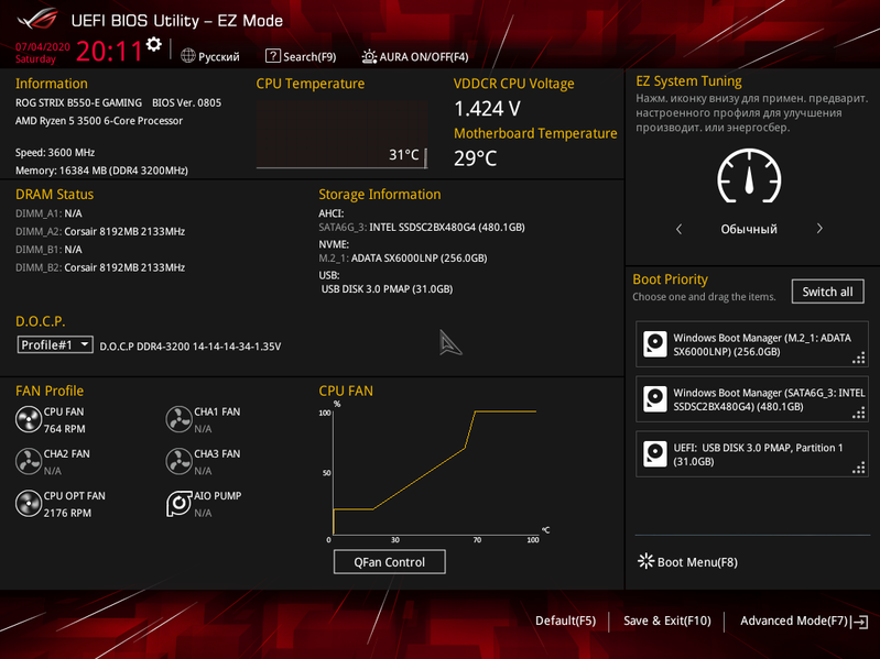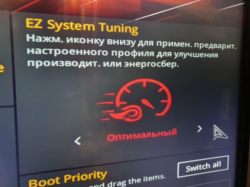 Включаем режим AI-Optimized (фирменный режим EZ System Tuning интеллектуального разгона в BIOS).