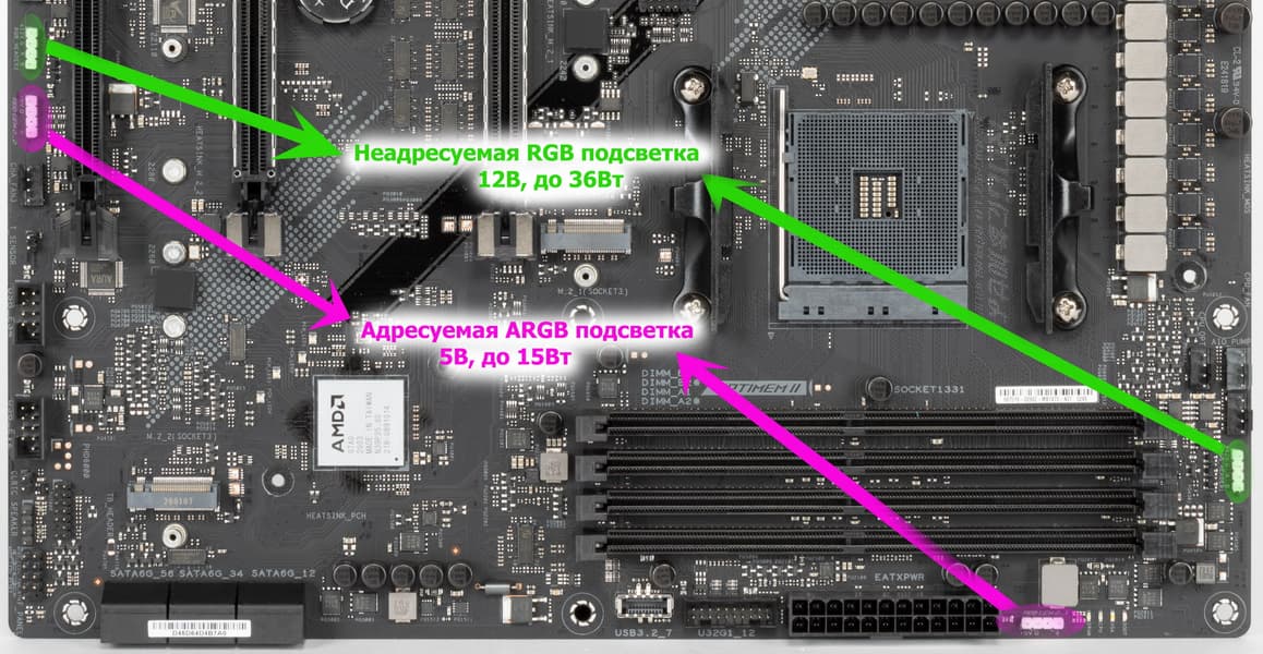 И напомню, что чипсетный радиатор тоже имеет пластиковую вставку, рассеивающую подсветку из светодиодов, установленных на самой PCB около B550.
