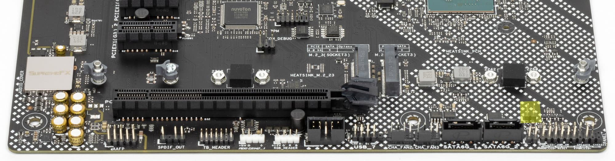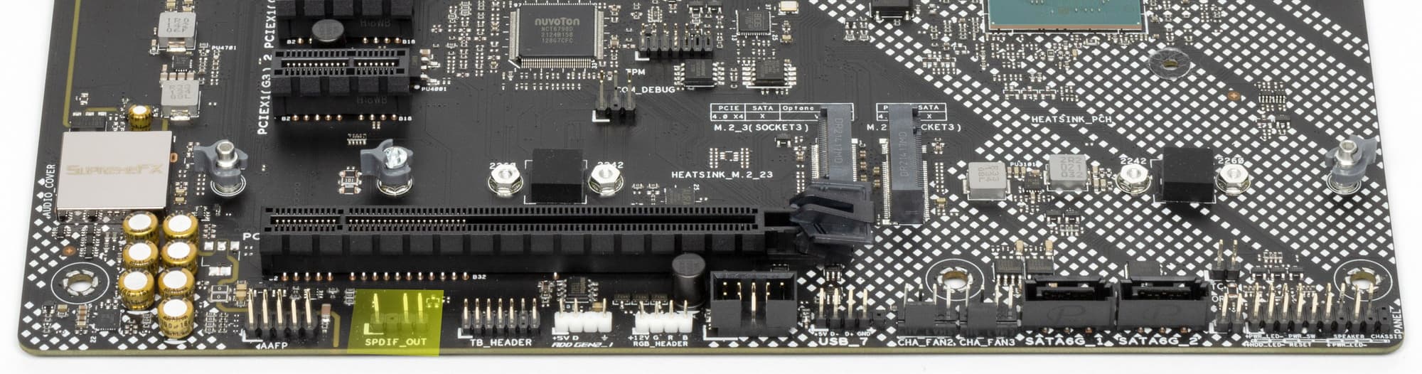 Теперь посмотрим выше на то, как работают процессоры в данной конфигурации. У CPU 12-го поколения всего 20 линий PCIe, 4 из них версии PCIe 4.0 отведены на порт М.2 (M2_1). Оставшиеся 16 линий PCIe 5.0 идут на единственный слот PCIe x16_1, поэтому вариантов переключений нет, как и мультиплексоров для этих целей.