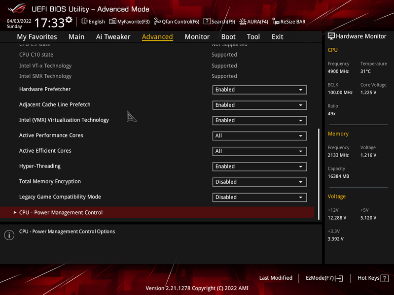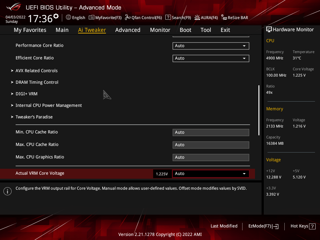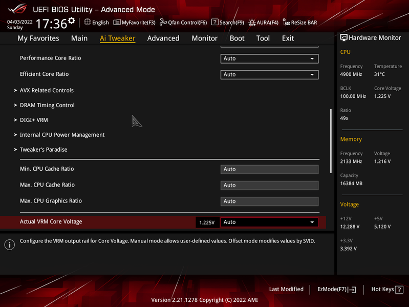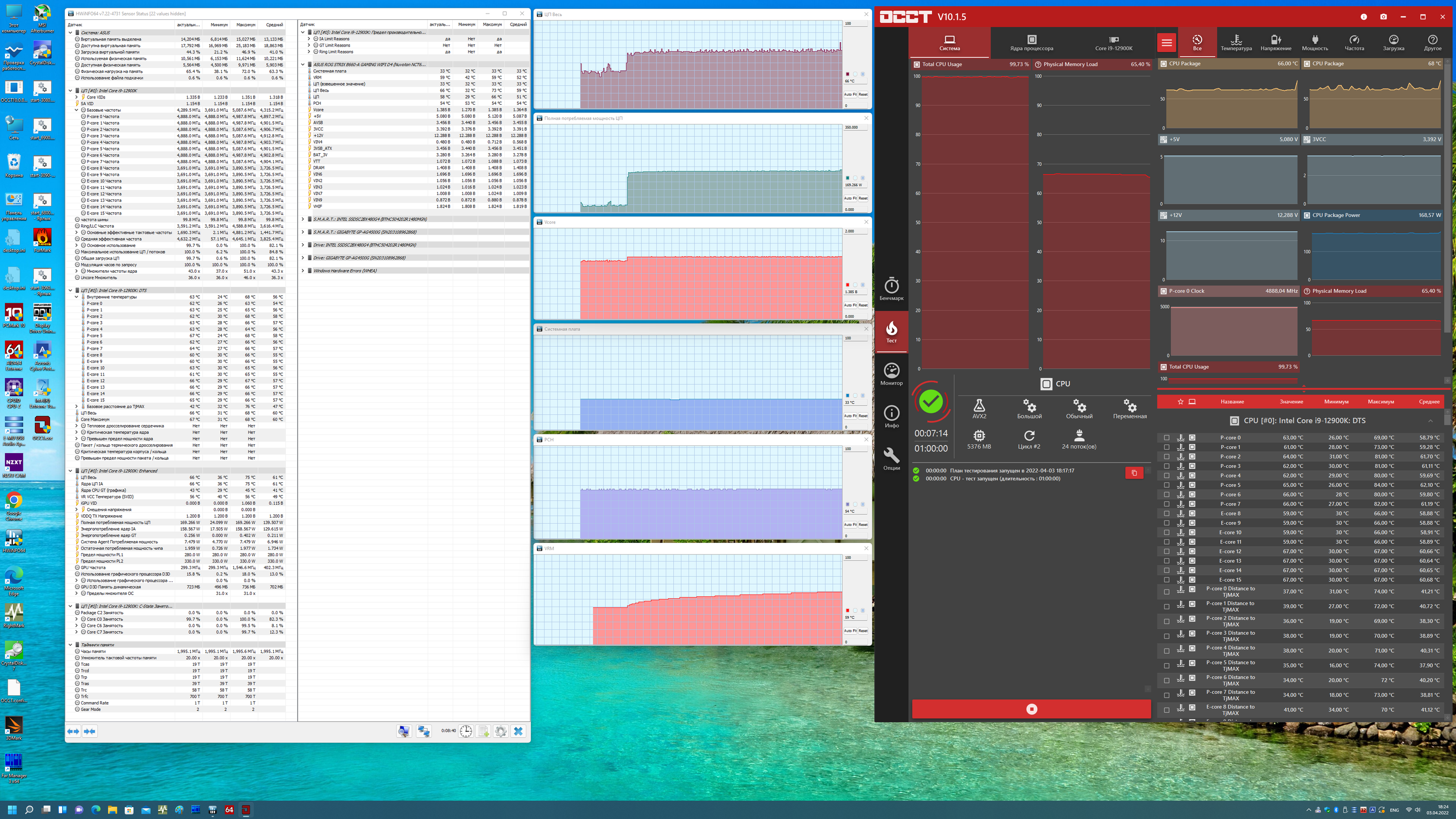 Как мы видим, автоматический разгон даже самого мощного на сегодня 12900К получился приличный: до 4,9/3,7 ГГц. При этом наша мощная СВО прекрасно справлялась с нагрузкой.