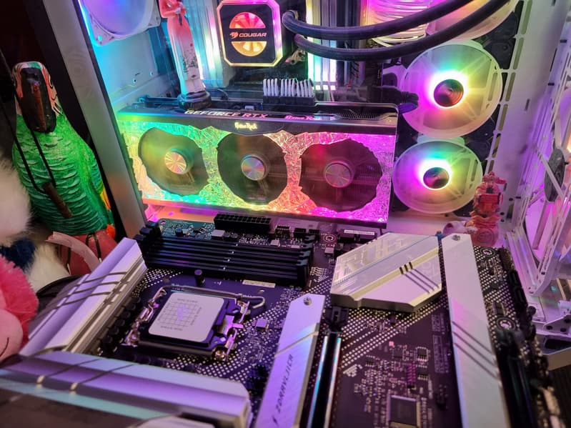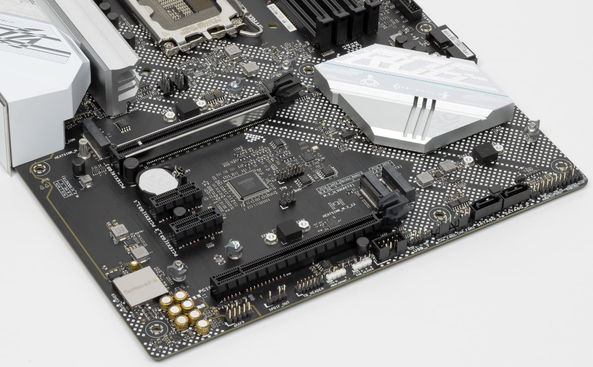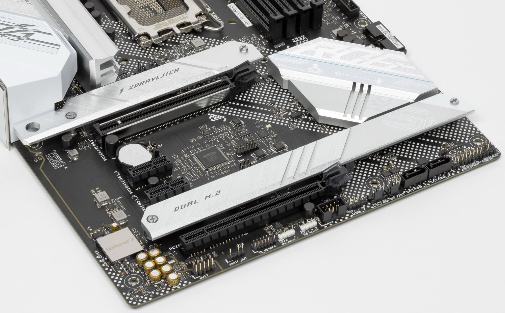 У нее 15 USB-портов, включая 2 быстрых USB 3.2 Gen2 (один из них пригоден для быстрой зарядки мобильных устройств благодаря повышенной мощности), а также один самый быстрый USB 3.2 Gen2×2 в виде порта Type-C на задней панели, плюс 5 портов USB 3.2 Gen1. У платы есть два «длинных» слота: один PCIe х16, получающий от процессора 16 линий PCIe, причем версии 5.0, и один PCIe x4. При этом она оснащена еще и двумя маленькими PCIe x1. Также у платы 3 слота M.2: один из них подключен напрямую к процессору линиями PCIe 4.0, два других подключены к чипсету B660 линиями PCIe 4.0 (но один из них ограничен пропускной способностью х2). Еще у этой модели 4 порта SATA и 6 разъемов для вентиляторов. Сетевые возможности хорошие: быстрый проводной контроллер 2,5 Гбит/с, а также один самый современный беспроводной. В числе плюсов платы можно упомянуть наличие подсветки, хотя и скромной, а также возможности для подключения дополнительных ARGB/RGB-устройств подсветки.
