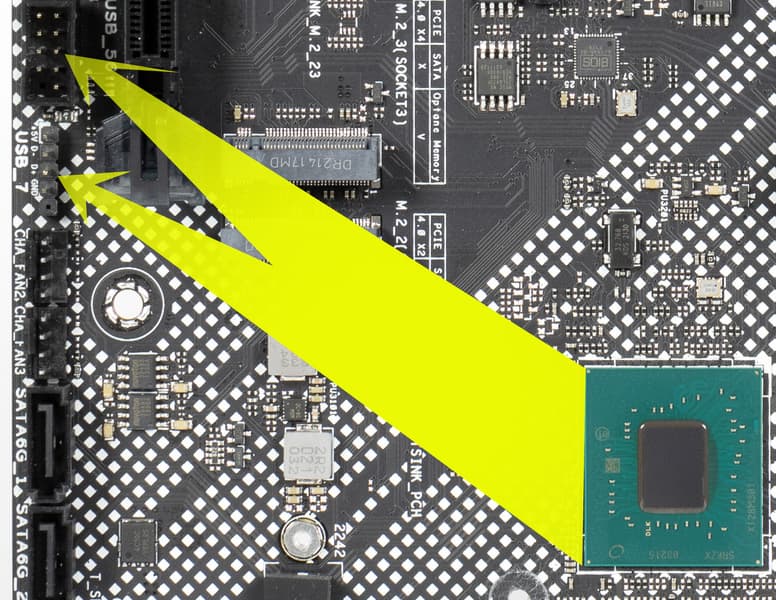 - 7 портов USB 2.0/1.1: 4 реализованы через хаб Genesys Logic GL850G (на него потрачена линия USB 2.0 от B660) и представлены на задней панели 4 портами Type-A (черного цвета); еще 3 реализованы через B660 представлены двумя внутренними разъемами на материнской плате: один на 2 порта, а другой на 1 порт.